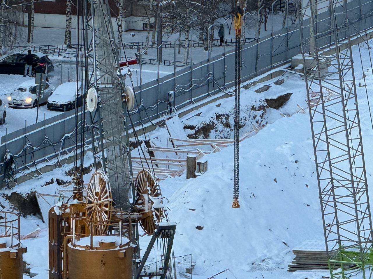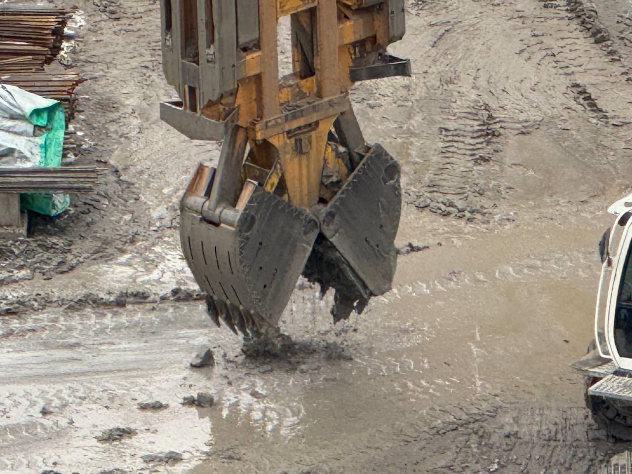 Станция метро «Богатырская» (Туристская). Работа грейферного ковша.