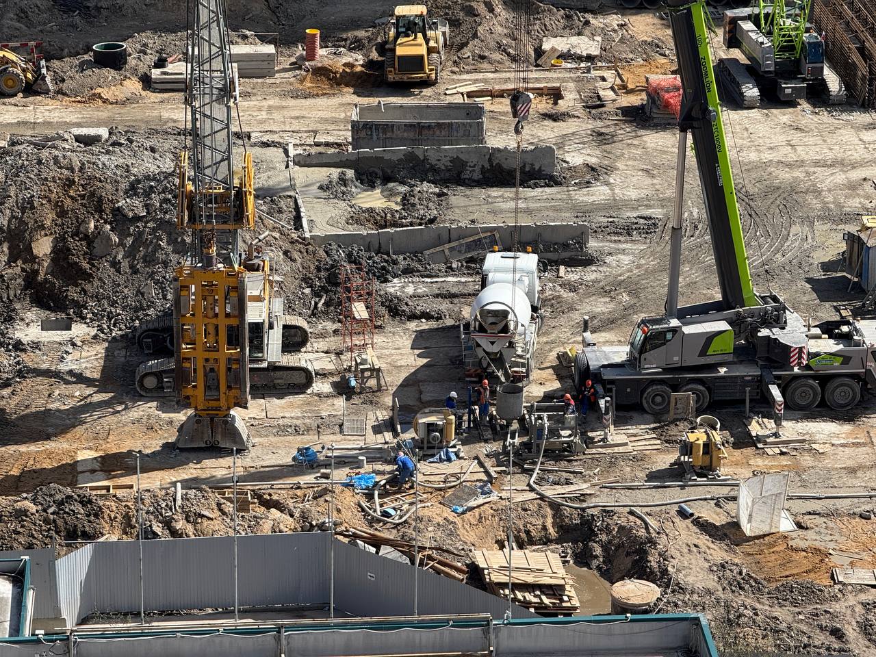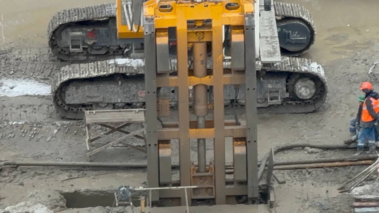 На строительной площадке станции метро «Богатырская» продолжаются работы по формированию стены в грунте.