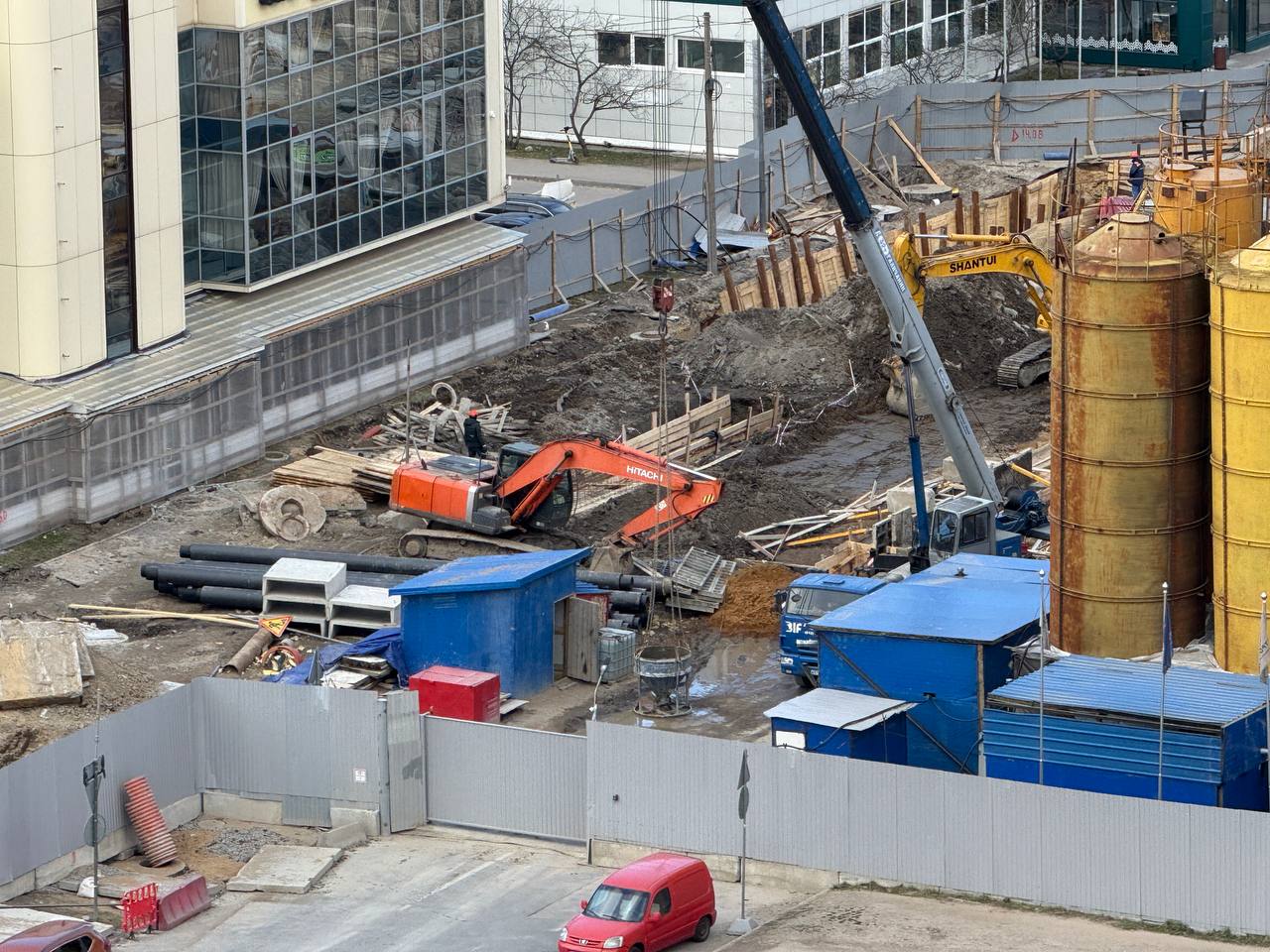 хочется верить, что фотки сделаны в выходной день. А то 5 человек на такой огромной стройплощадке насчитал. Темпы стройки прям потрясают