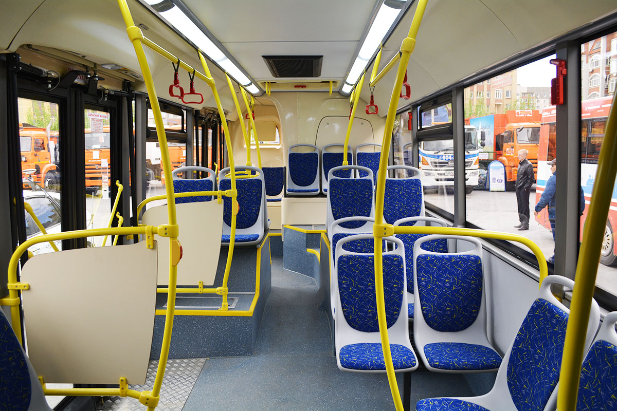 Внутри всё серое, кроме стёкол (LOL), сидений и инвалидного пандуса