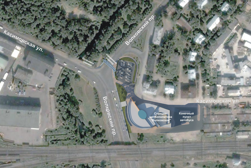 По уму стоянки автомашин и автобусов надо поменять местами, но тут всё ясно: кто платит, тот и заказывает музыку. Учитывая что там рядом железнодорожный мост, а Волковский проспект идёт в углублении, непонятно что ещё можно придумать.