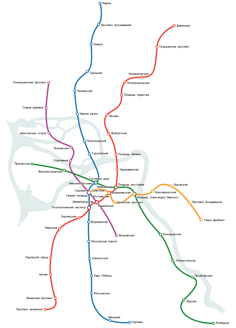 Опять же, на схеме не нужны эти пугающие извилистые линии, к тому же не соответствующие реальной трассировке - посмотрите, где находится Адмиралтейская.