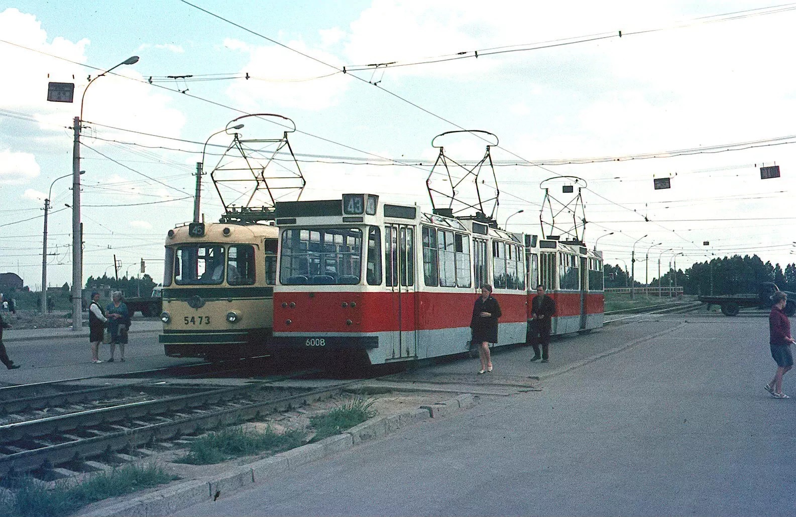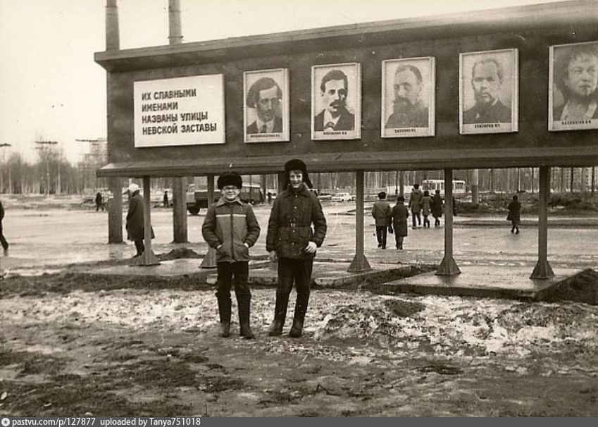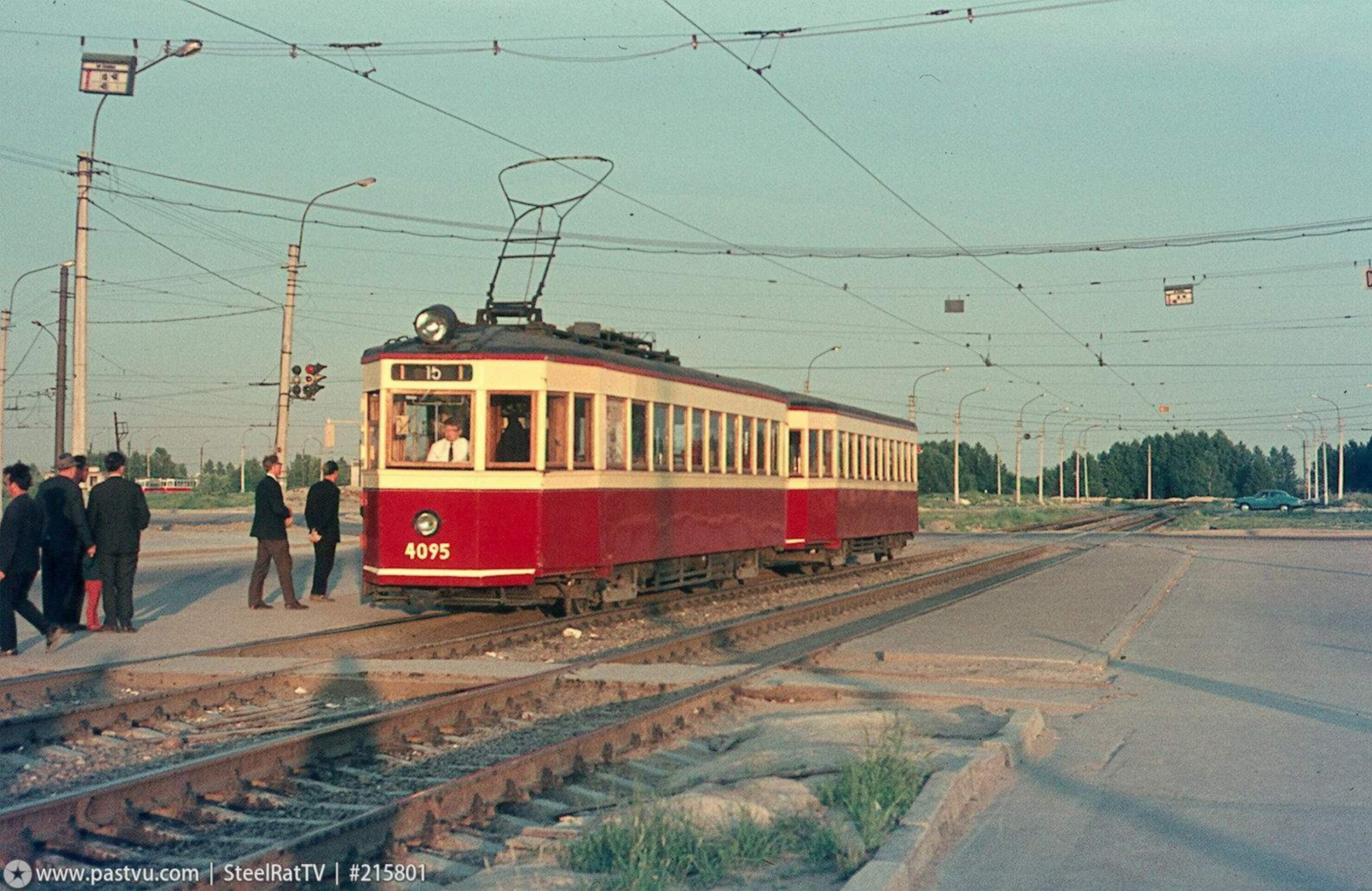 Проспект Славы. Трамваи 1970 г. Место вестибюля гд-то на заднем плане