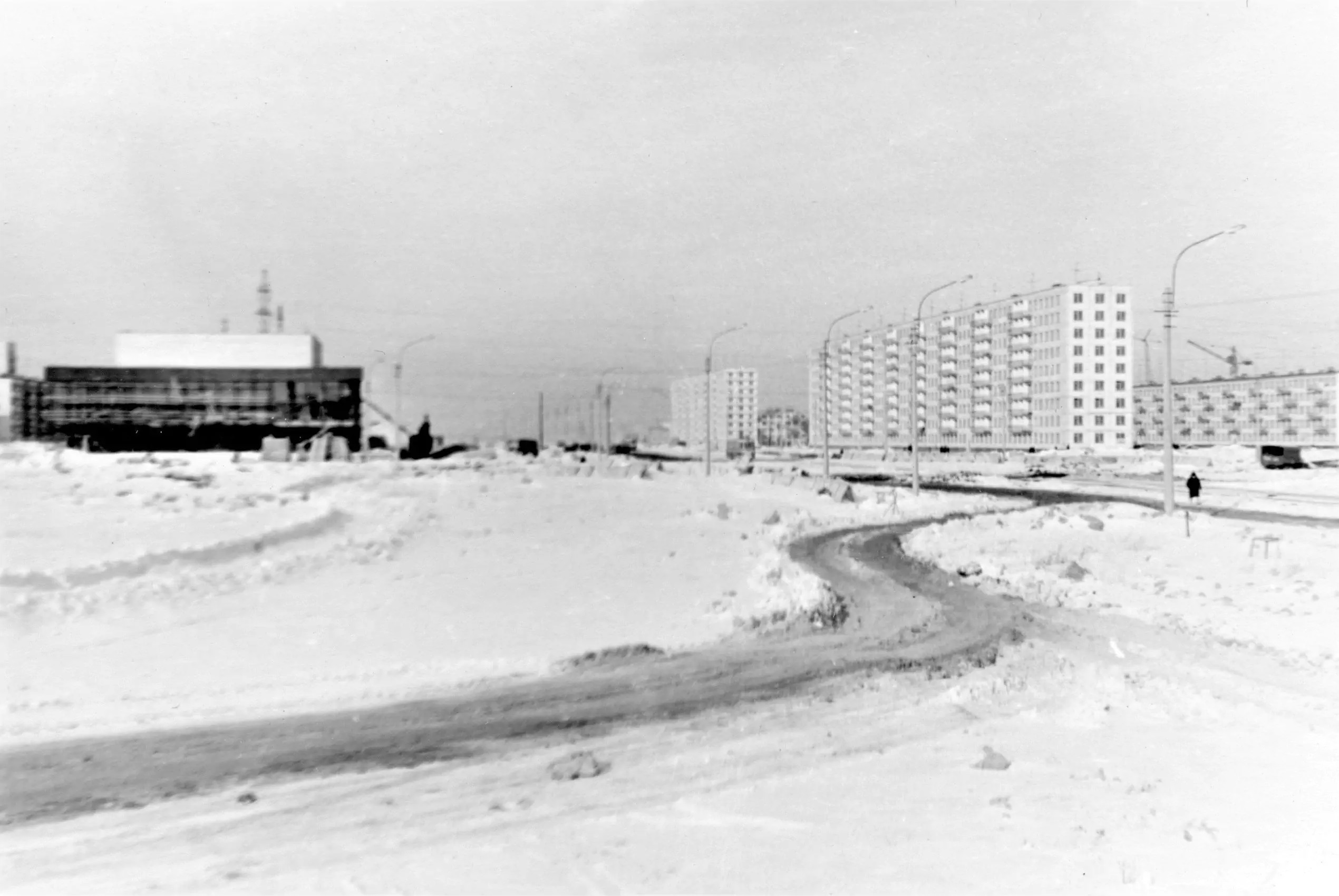 1976-1977, вид от улицы Ушинского в сторону будущей станции "Гражданский проспект":
