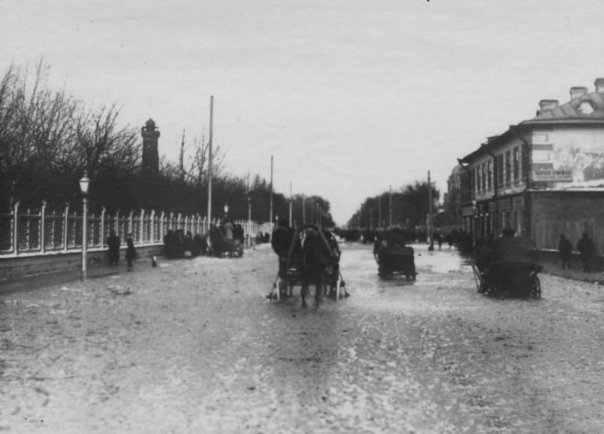 Большой пр., наводнение, вдали видна пожарная каланча, фото 12 ноября 1903 г.