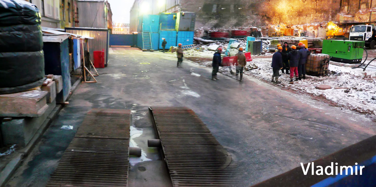 Из работ разобрали только дом. А бурилка, которая должна работать здесь, прошла только 1/5 колец там на Обводном канале. Вывод?
