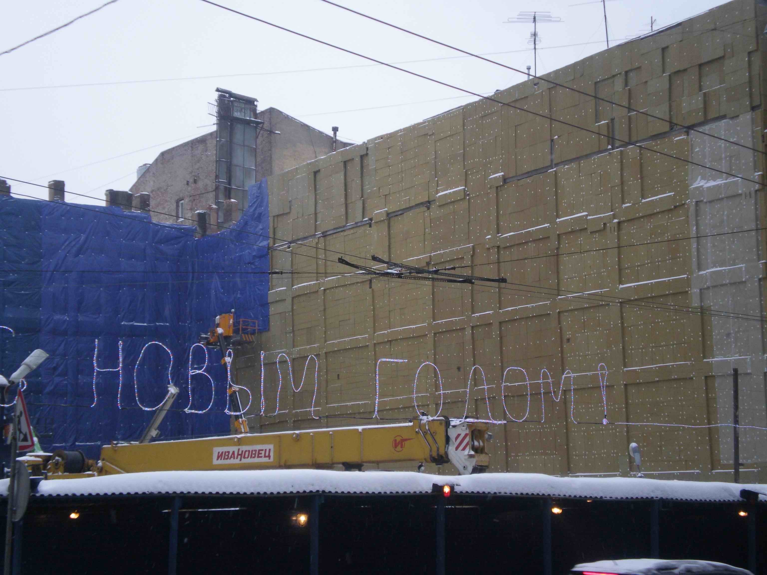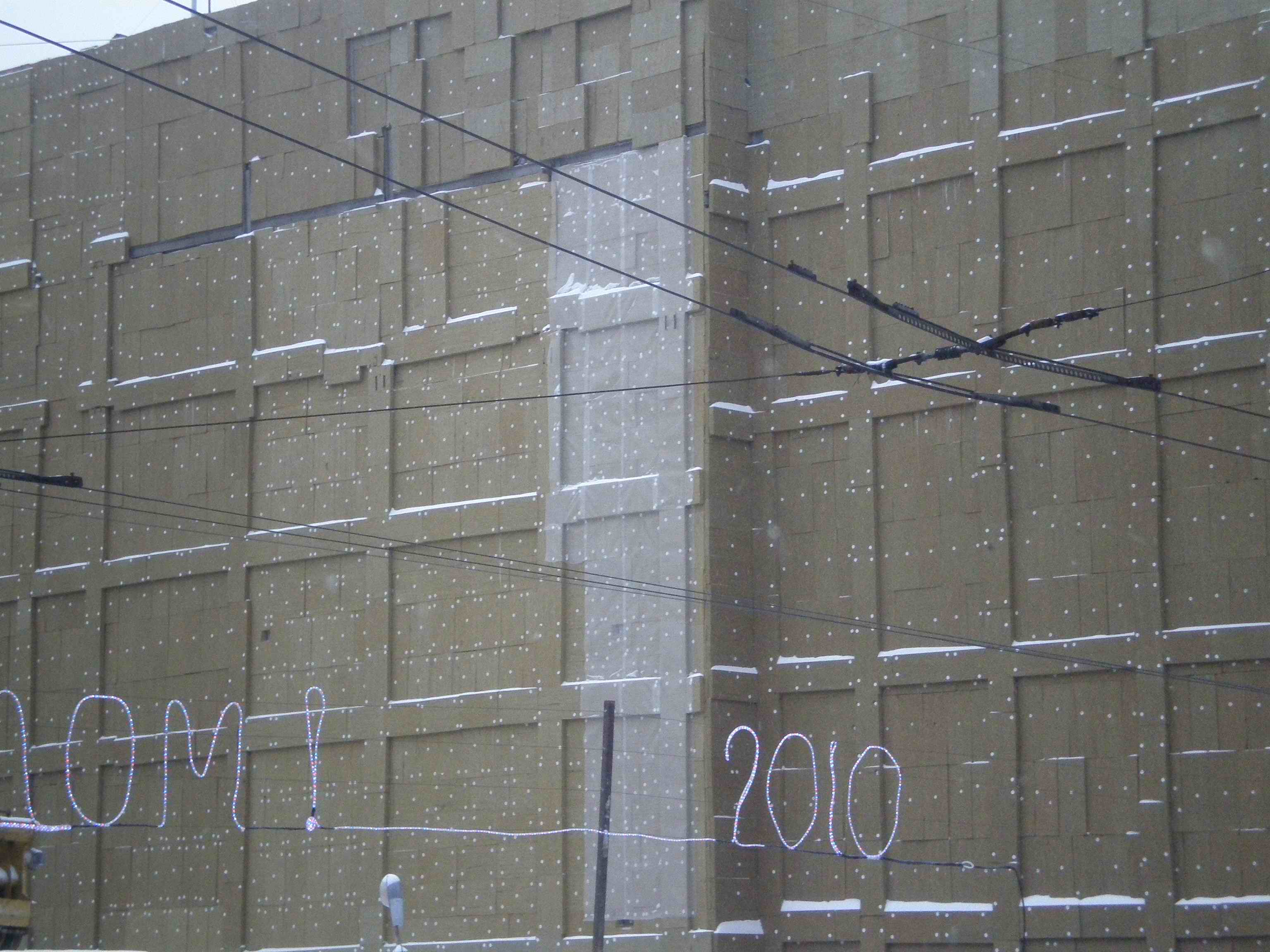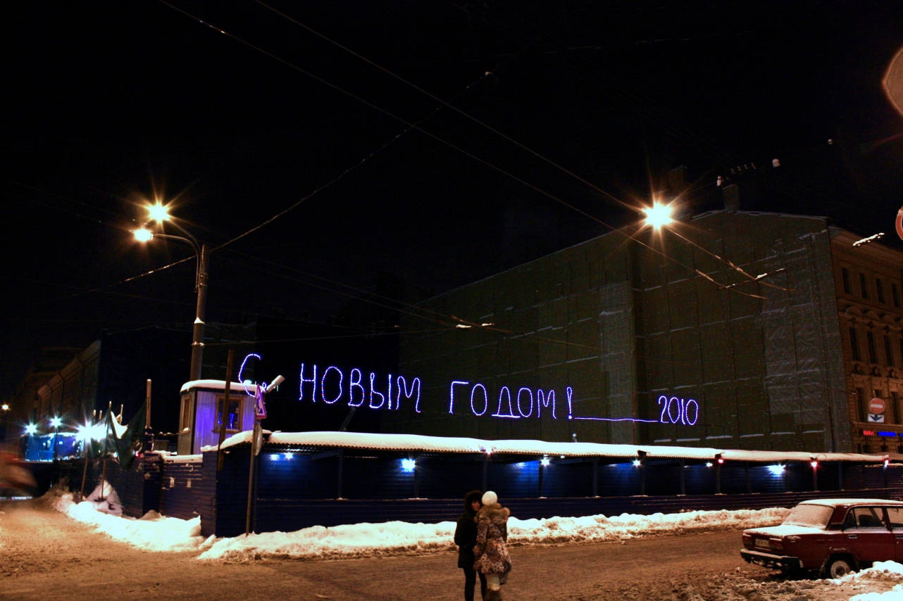 Вполне в духе нашего метро потратиться на светящуюся надпись на заборе. Пусть это и всего лишь "С новым годом".