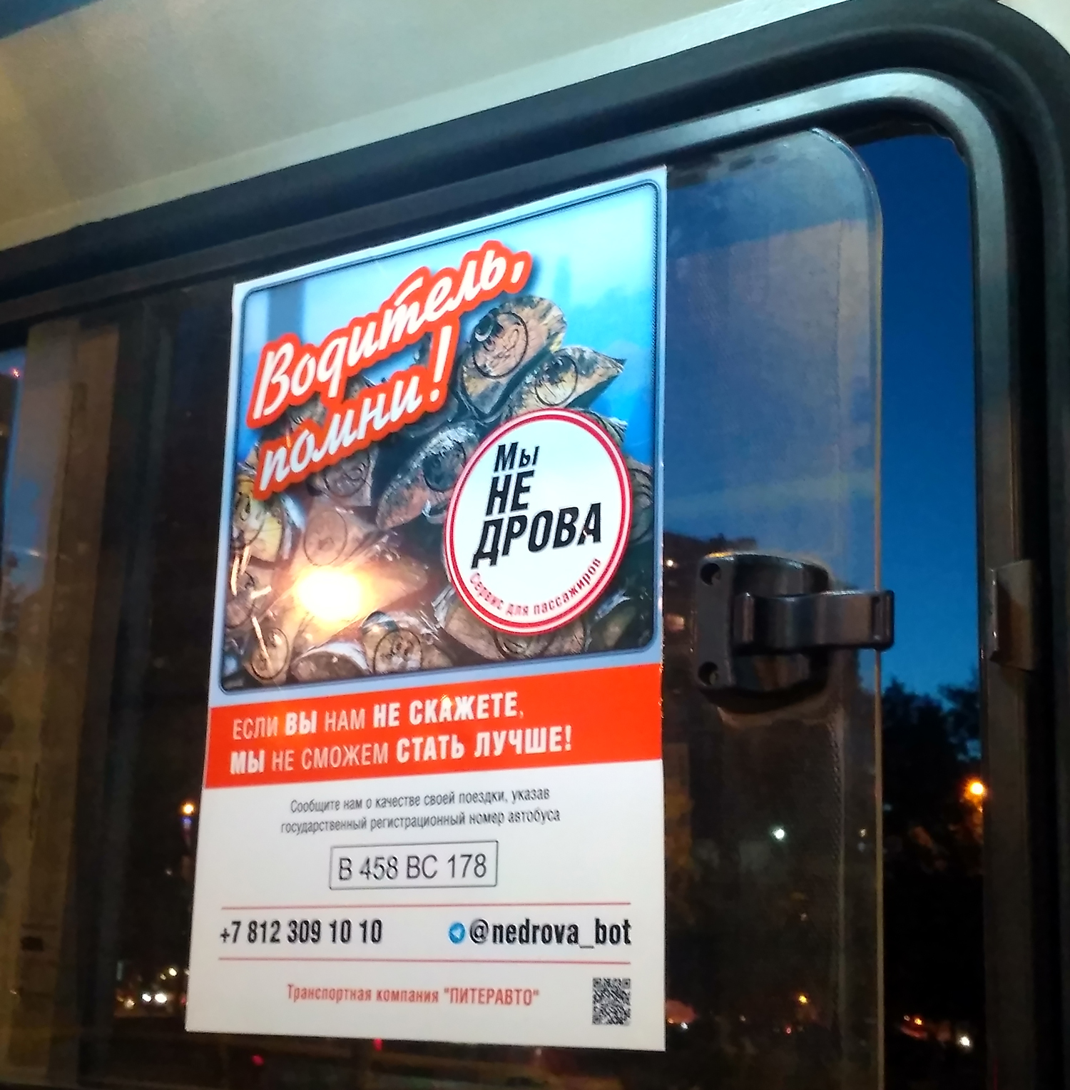 В целях улучшения качества обслуживания компания «ПИТЕРАВТО» запустила на своих автобусах новый сервис для пассажиров, - «Мы не дрова».