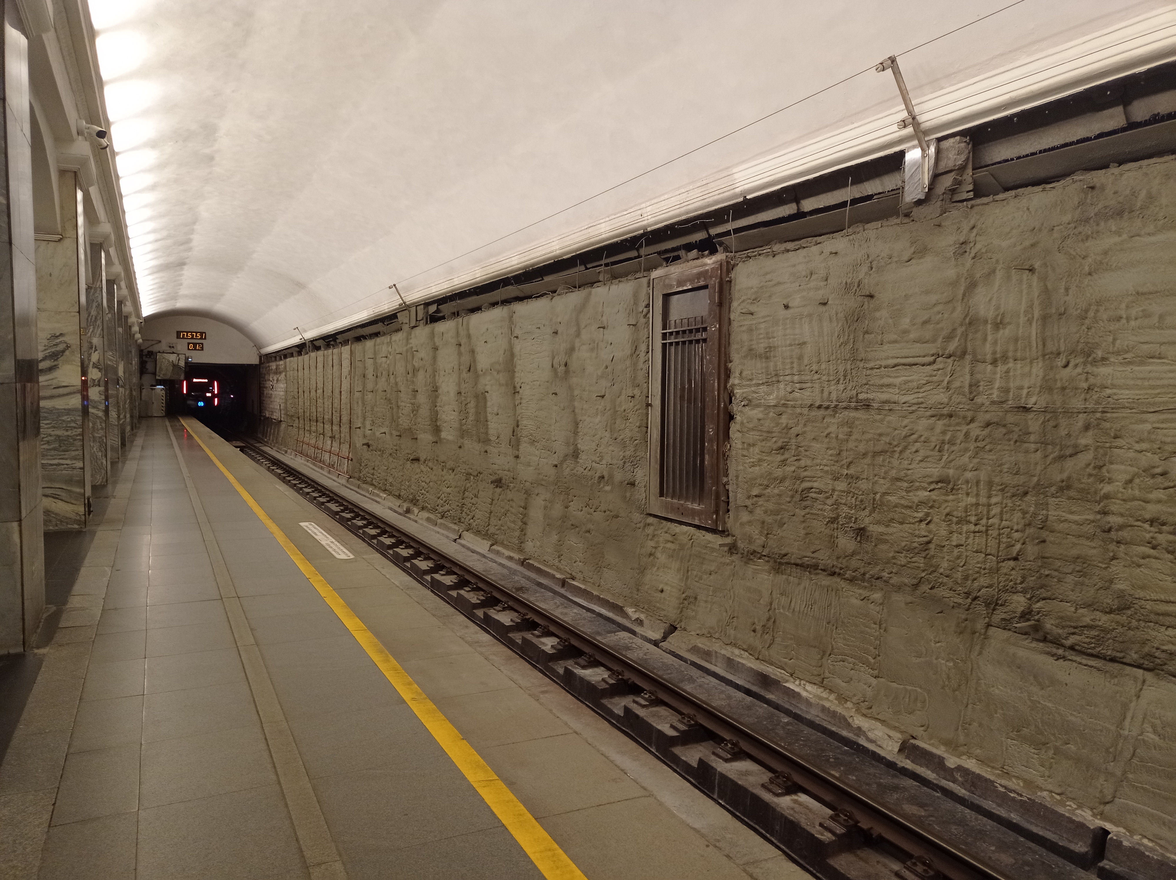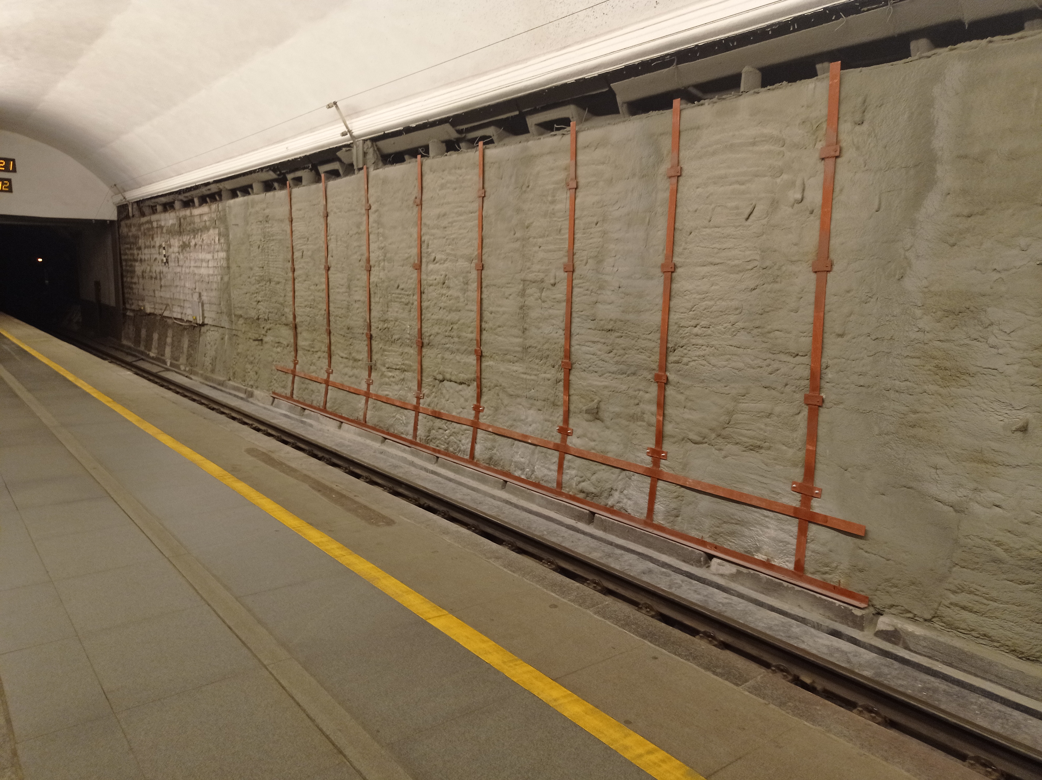 Примерно столько, сколько и на "Проспекте Ветеранов": на каждой стене можно работать только либо в четную, либо в нечётную дату после снятия напряжения с контактного рельса.