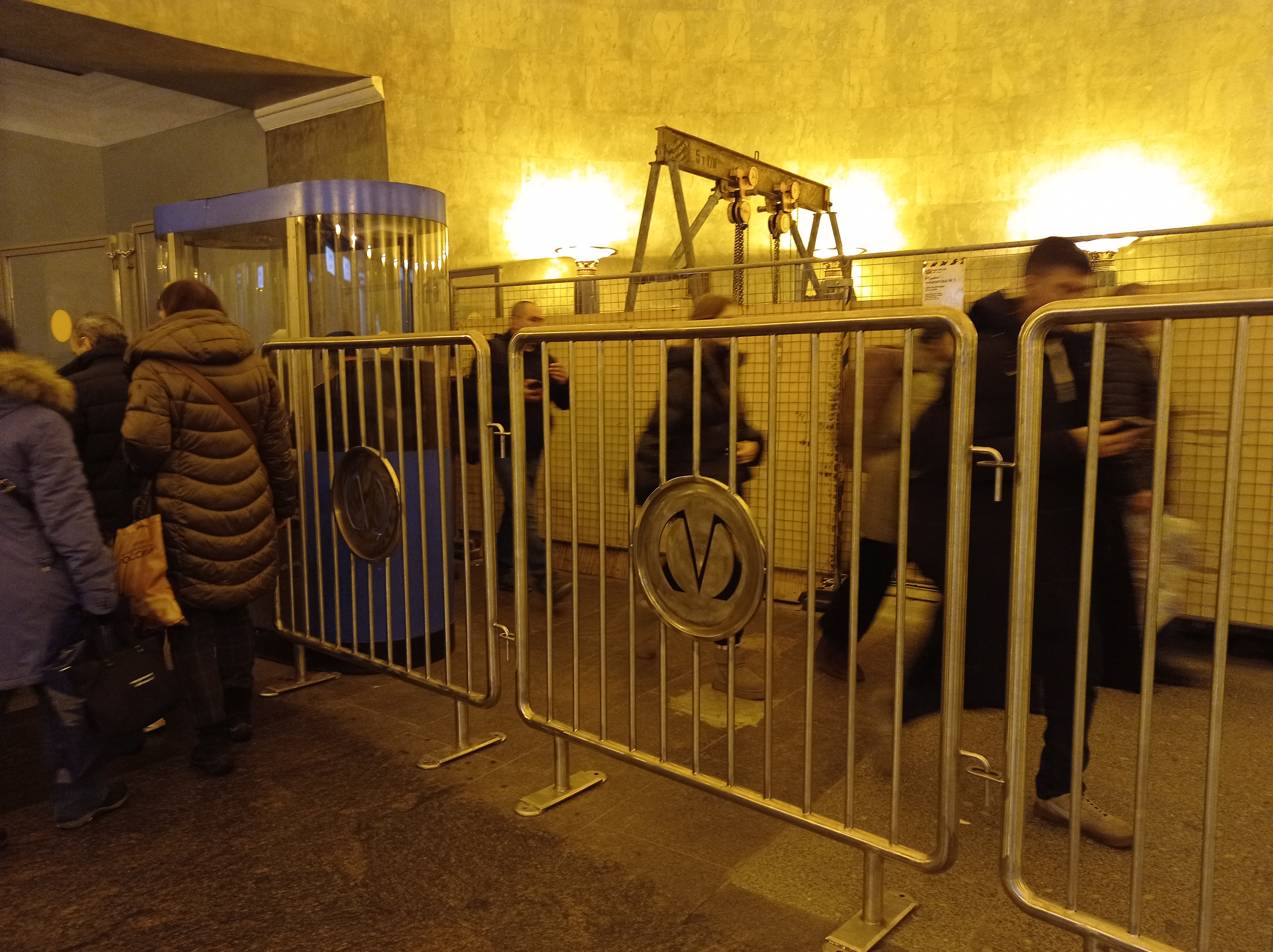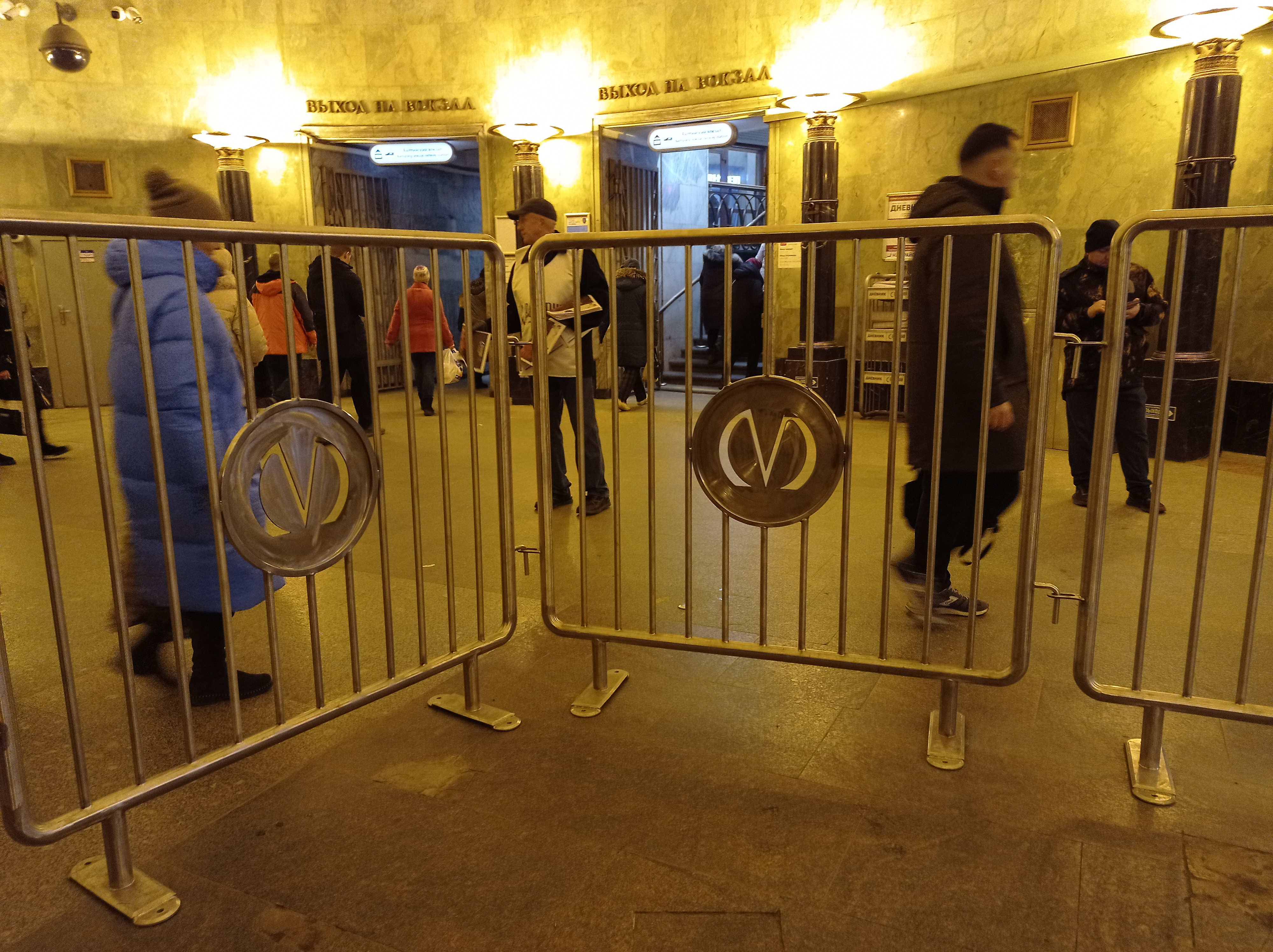 На днях был в вестибюле Балтийской. Обнаружил, что временно стоят а-ля решётки с логотипом ПМ.