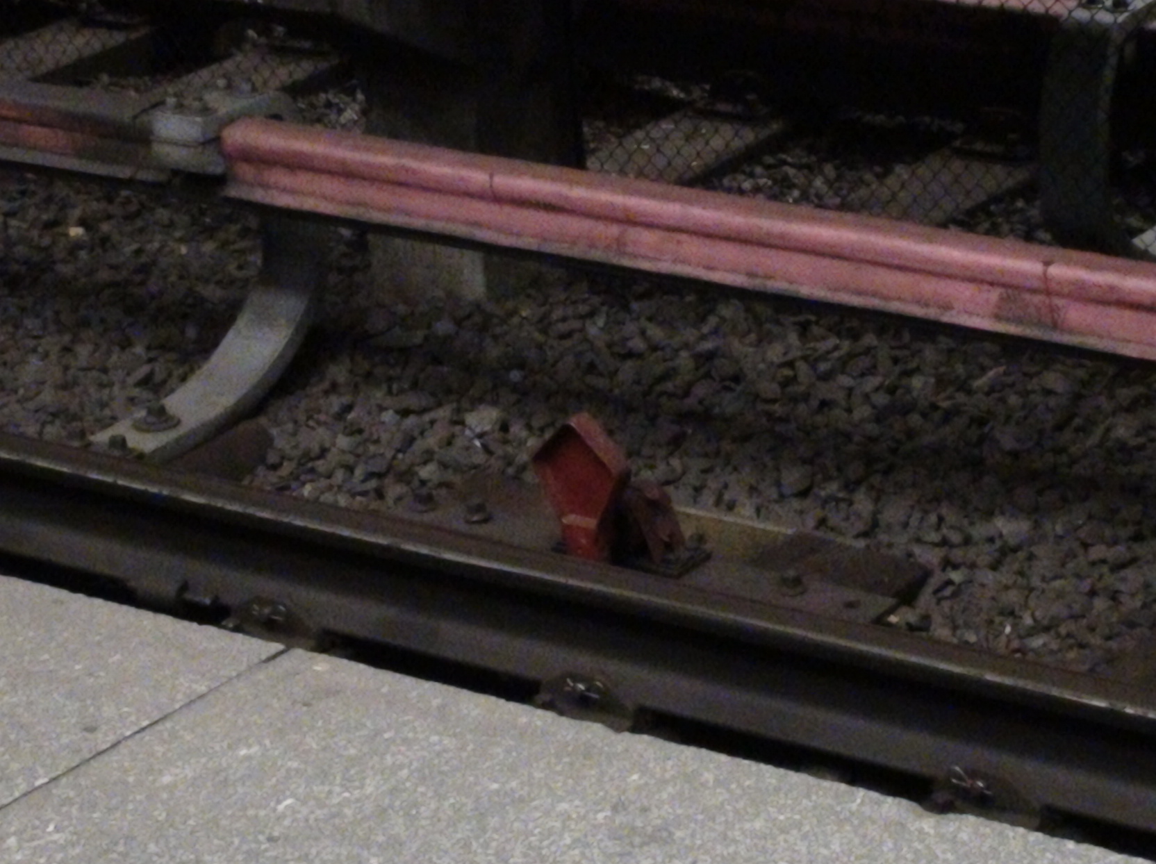 Забавно, что нет сбрасывающей стрелки. Подозреваю, что это из-за того, что в случае проезда на большой скорости, состав может впечататься в стену/тюбинг. Такое потом долго и дорого восстанавливать, поэтому видимо проще чтоб в такой ситуации было столкновение. Ведь на жд сбрасывающая стрелка по сути скидывает состав в сторону, как правило на щебень или на землю. Также, на жд есть блокиратор (не знаю, как он точно называется) - такая огромная штуковина, которая одета на рельс (не путать с башмаком).
