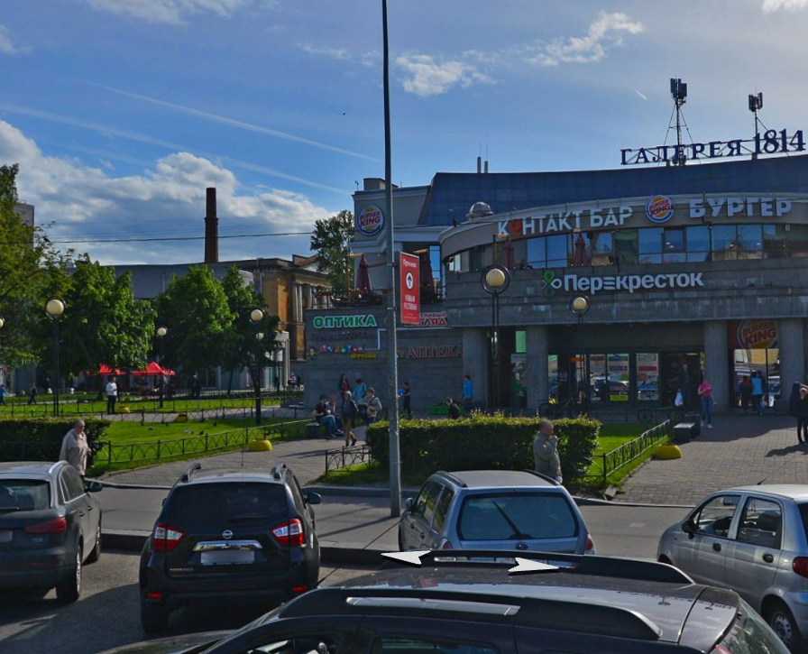 Это, конечно, здОрово, но в итоге получаем вот такие столбы прямо посередине тротуара. А если посмотреть панорамы этого же места 10-летней давности, то старые столбы стояли гораздо ближе к проезжей части и не мешали проходу.