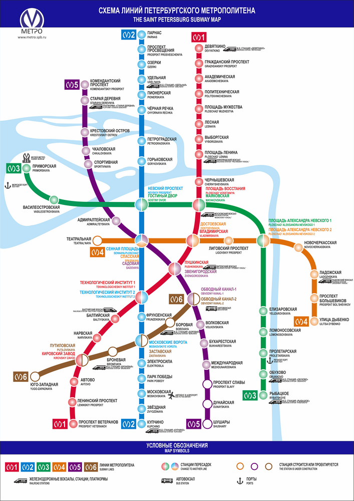 5. Все дополнительные объекты (ж/д станции, вокзалы, автовокзал, порты, пр.) должны также находиться строго под названиями станций ("Звенигородскую" наверх, "Пушкинскую" ниже, аналогично поступить с "Площадью Восстания"). В качестве исключения можно оставить морской порт, т.к. он не находится непосредственно у станции.