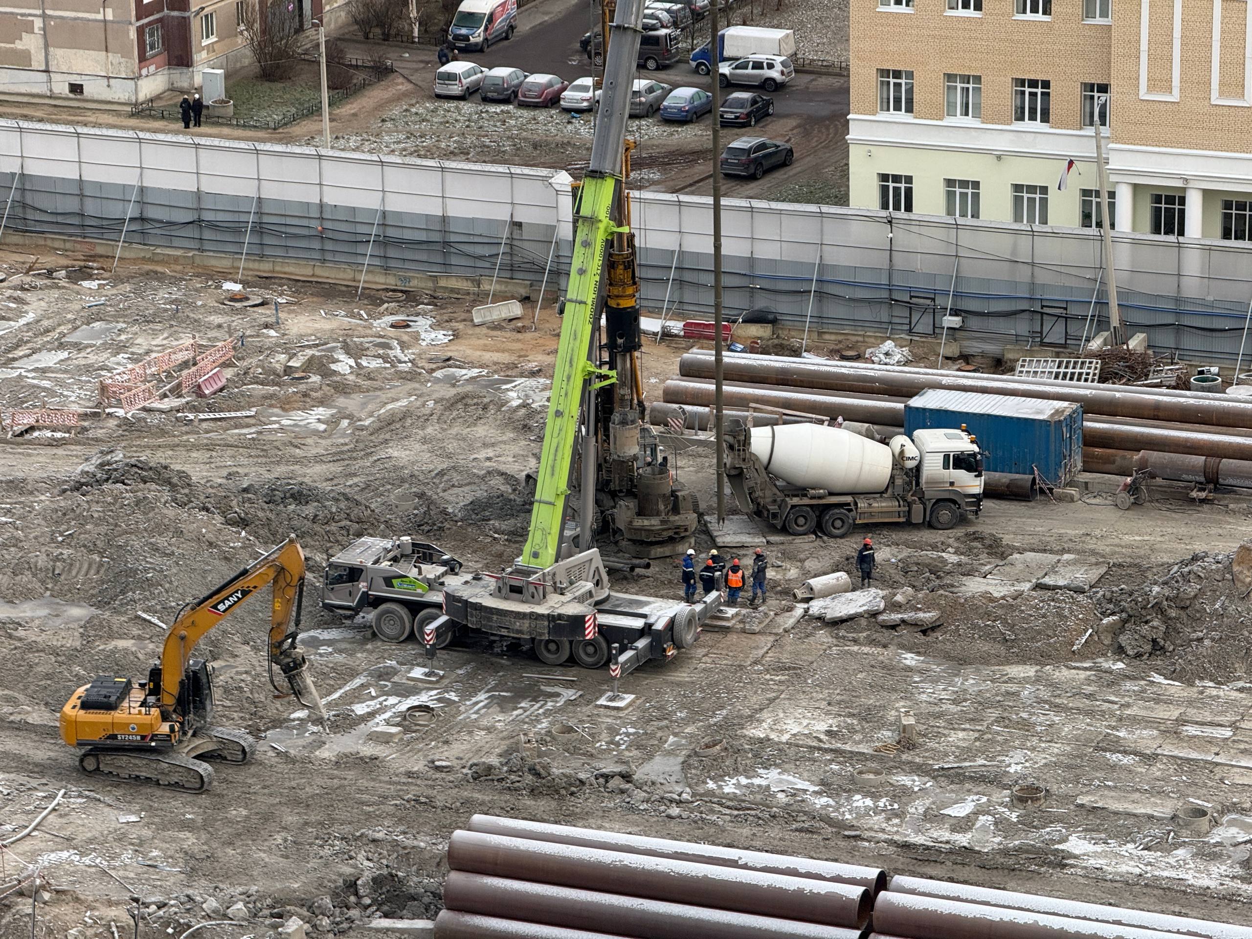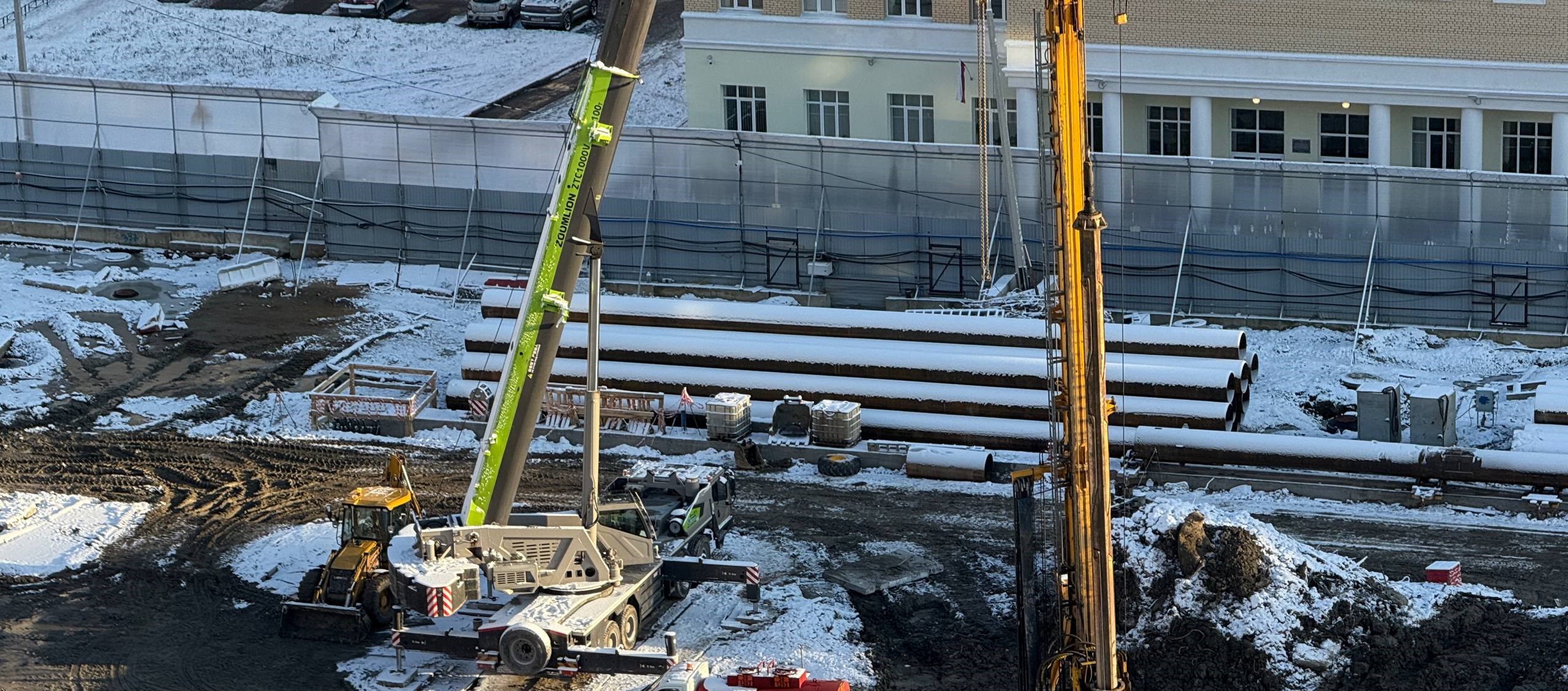 Ведутся работы по устройству «стены в грунте» — ограждения котлована будущей станции.