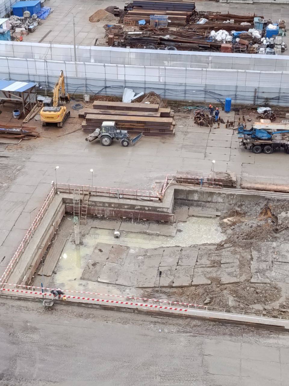 Начата разработка котлована - приступили к выемке грунта внутри ограждения.