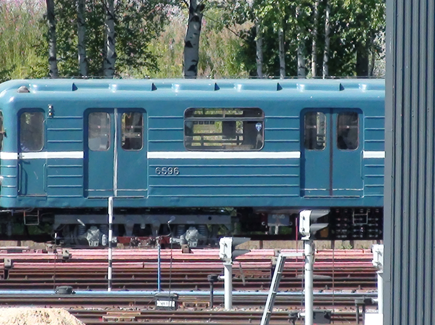 Сегодня на манёврах замечен 6596. ДВери у него без полосок. На линии таким я его не видел.
