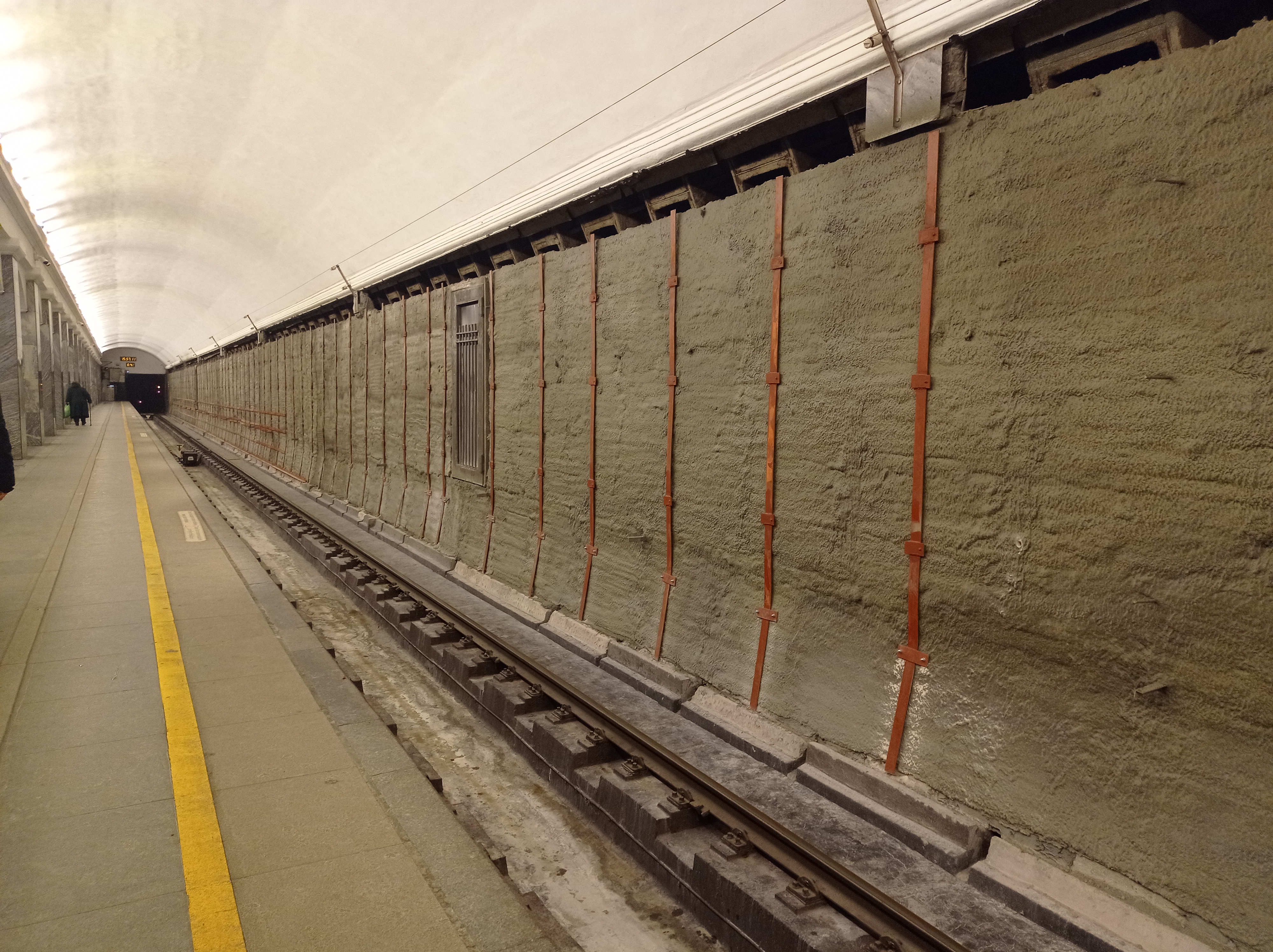 Состояние путевых стен на сегодняшний день. Кстати, повесили новую табличку об этом, теперь дата оконяания ремонта вместо 29 января стоит 31 августа.