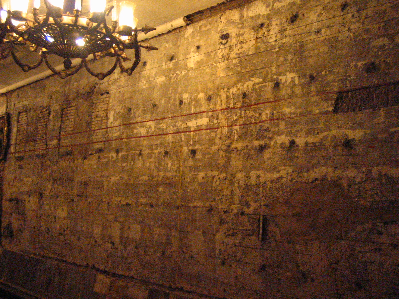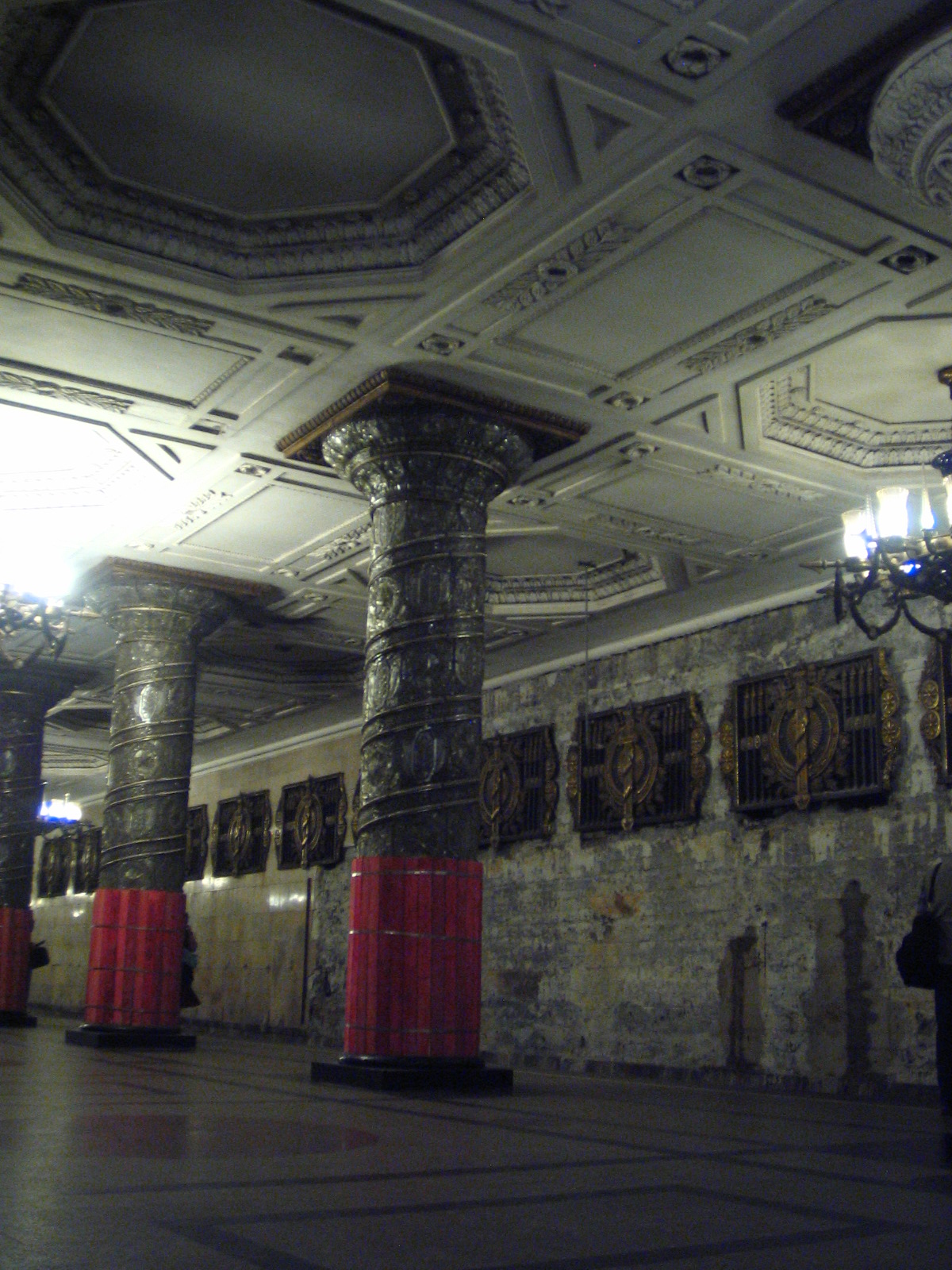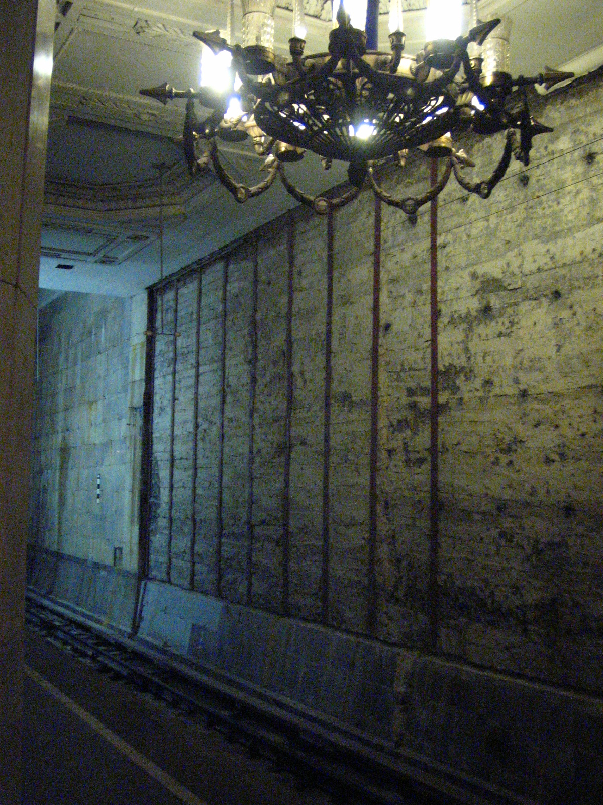ну да, жутковато выглядит, но когда новое сделают, может даже лучше стать (как на Кировском Заводе, скажем)... кстати, думаю, что две бутафорские решетки (там где вентялиция заделана) обратно вешать не будут... хорошо бы, чтоб что-то приличное придумали относительно убогих дальних торцов станции, но там, что странно, даже мрамор со стенок не сбивают (хотя он тоже продырявлен и весь в подтеках)...