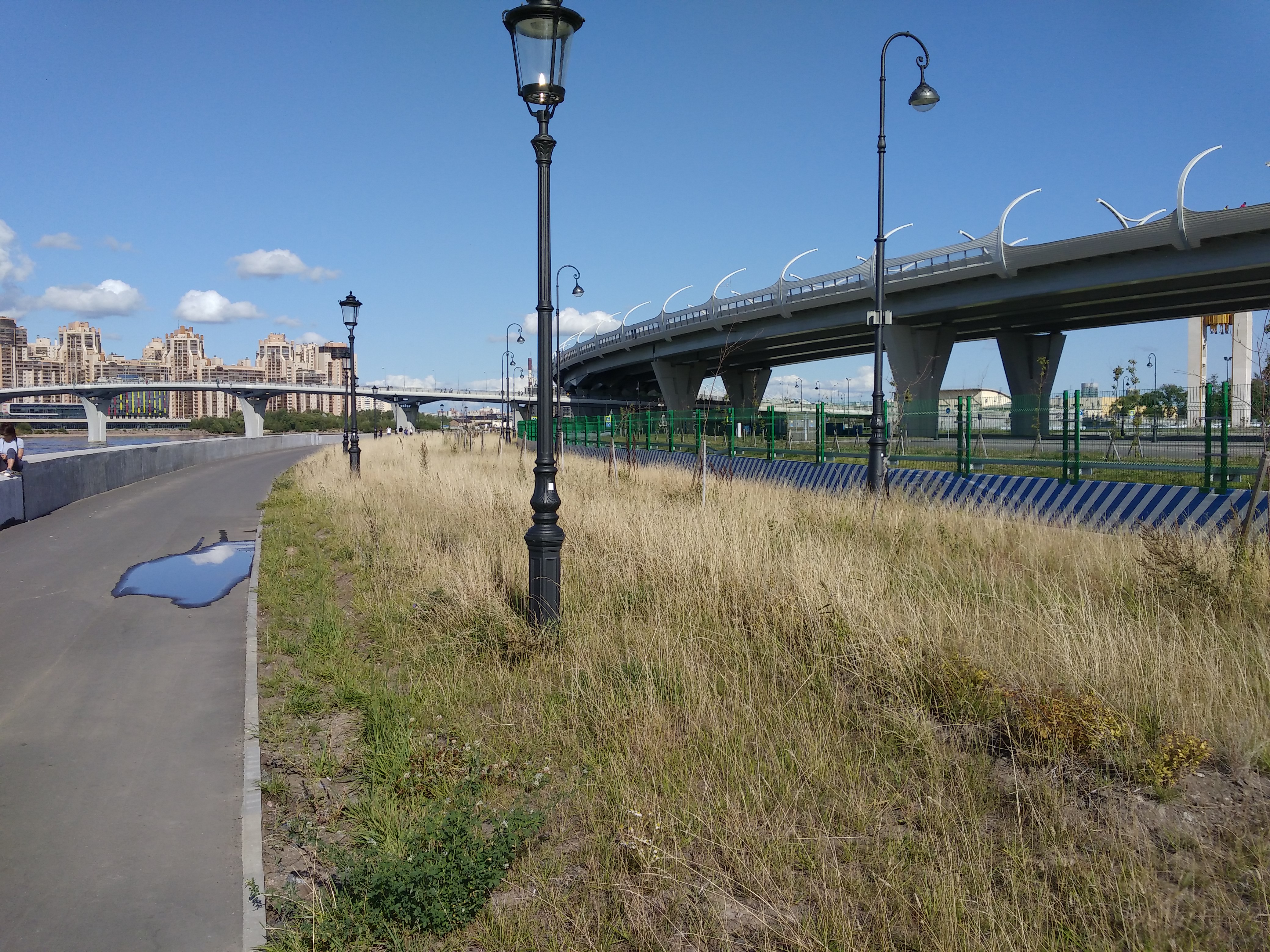 А вот по поводу "безопасности" всё ещё есть вопрос: как оказать экстренную помощь "выпавшему за борт" человеку? Подходов к воде там нет, а ближайшие -- в руслах Невы и Невки, туда из-за течения, возможно, не попасть. Впрочем, это немного оффтоп.