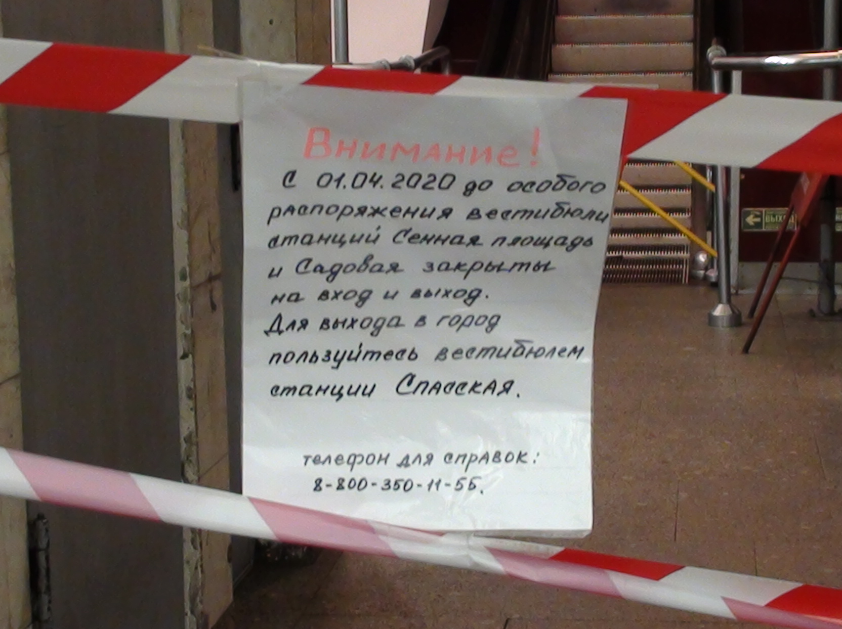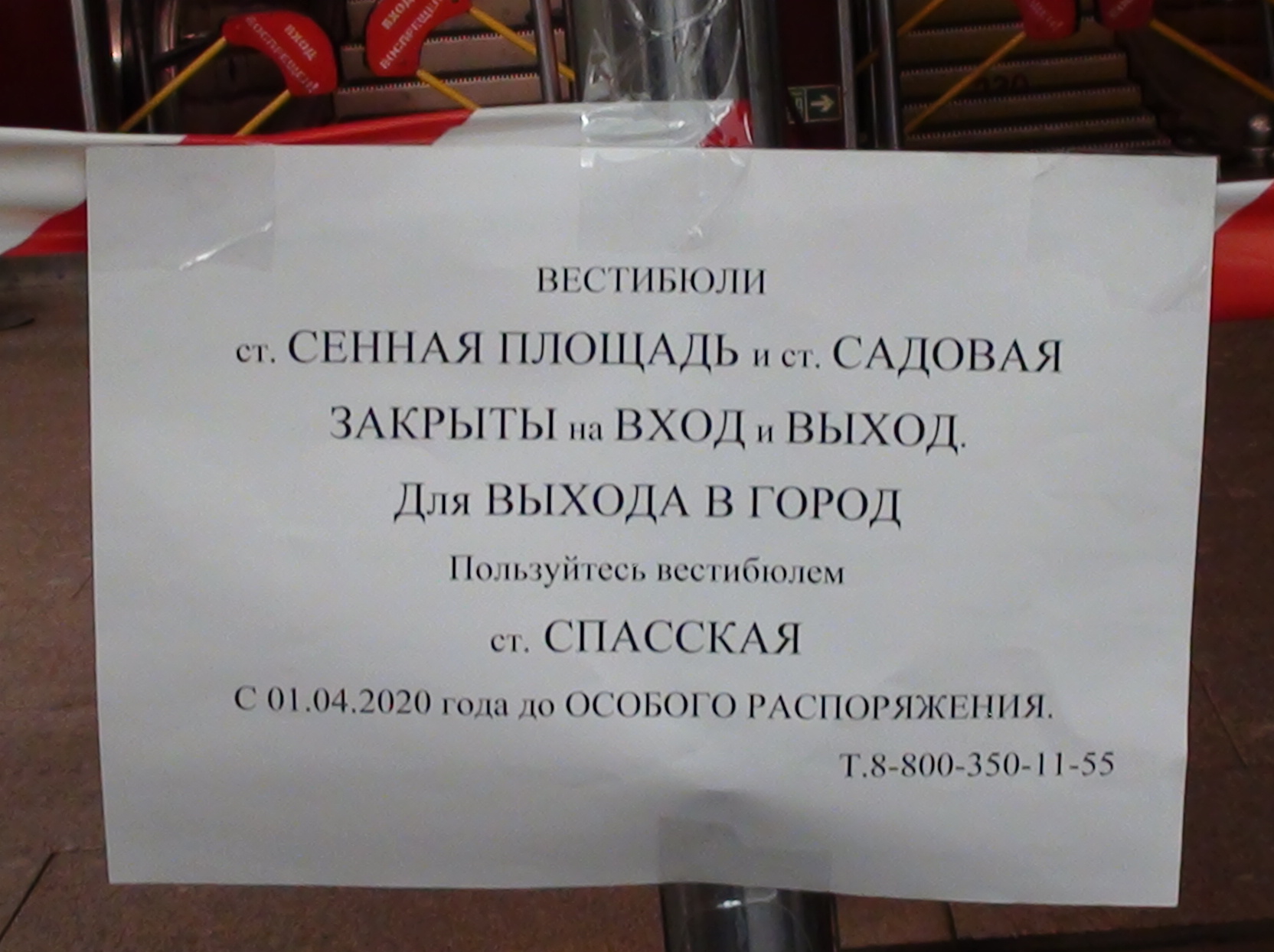С Сенной пл. по-прежнему не выйти. Работает только 1 выход.