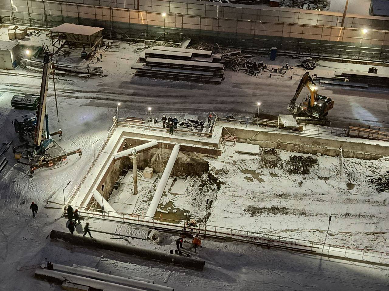 Продолжается раскрытие котлована станции.