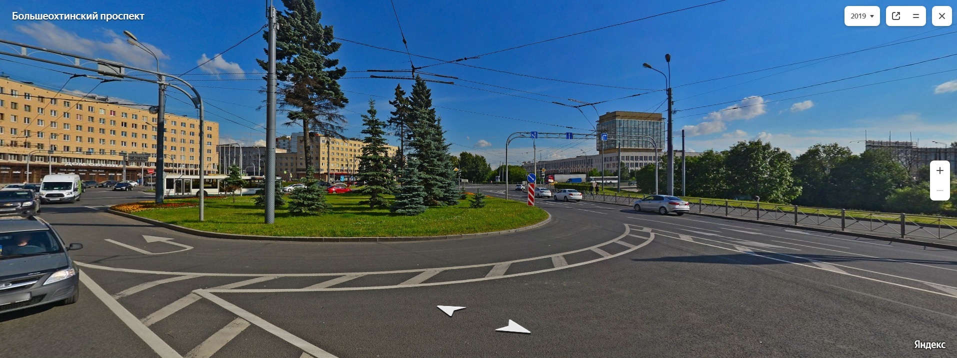 В-третьих, внизу две картинки: как раз это место отражено в динамике на панорамах. Там как раз троллейбус уступает дорогу фотографирующей машине.