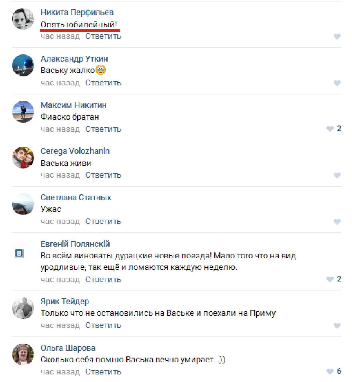 И вновь поломка поезда. Пишут, что Юбилейный. На Ваське фарш.