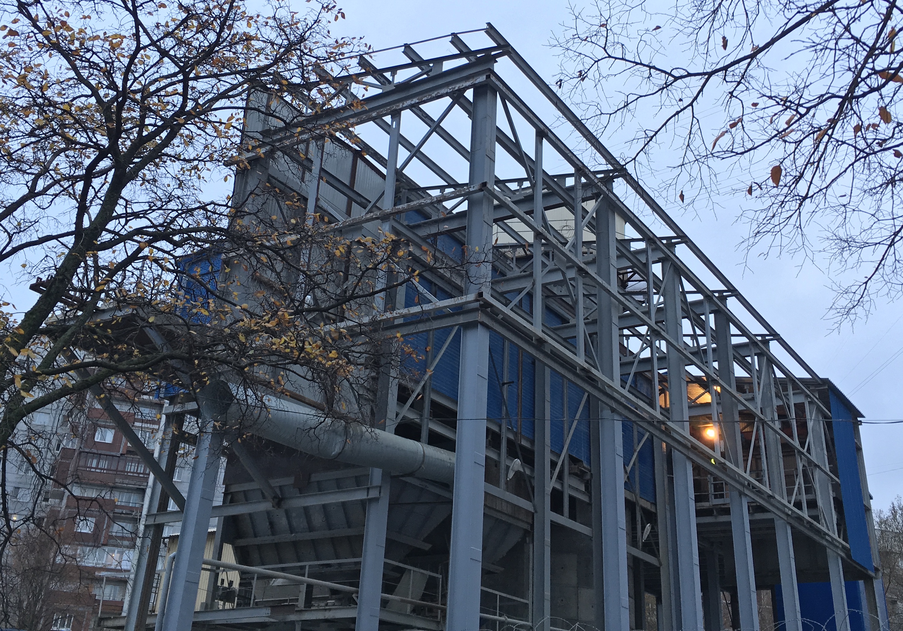 У тельферной эстакады сняты панели крыши и стен.