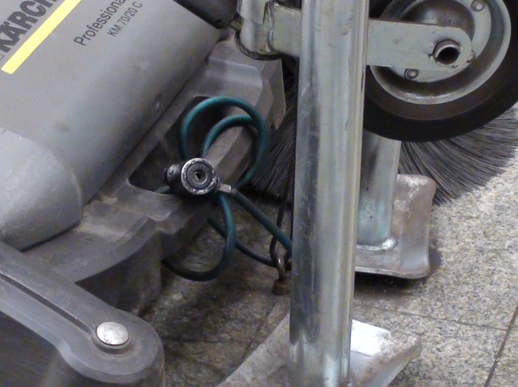 так может она зафиксирована? там видны элементы, за которые можно сделать крепление к полу. тогда на пути скинуть не получится, как и покататься и т.д. признаться честно, это выглядит куда эстетичнее коробок и заборов. современная малогабаритная уборочная техника вообще няшна и хороша собой всегда