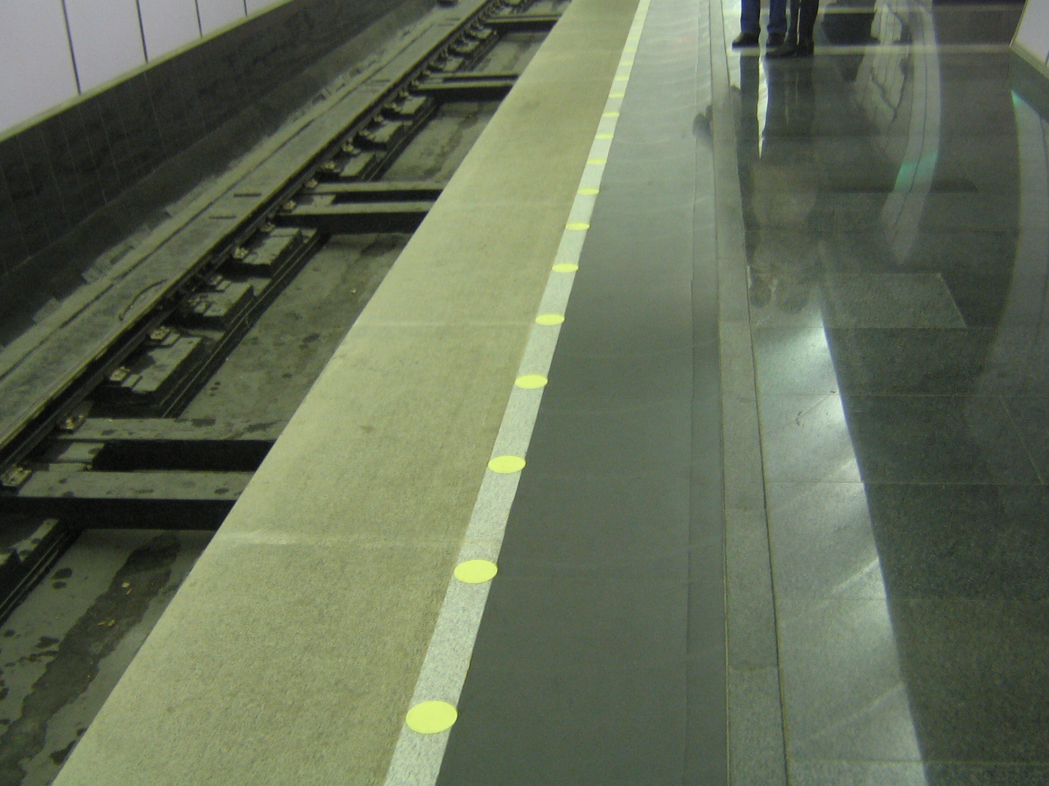 Сегодня ночью поменяли жёлтую полосу на краю платформы на жёлтые точки через каждые 20 см.