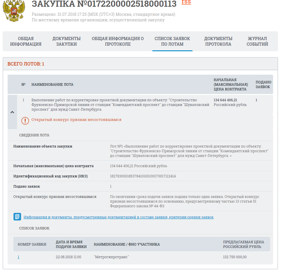 По условиям контракта подрядчику нужно актуализировать уже существующую проектную документацию по данному участку Фрунзенско-Приморской линии метро, разработанную ОАО «НИПИИ «Ленметрогипротранс» в рамках госконтракта от 18.11.2011 №2745.