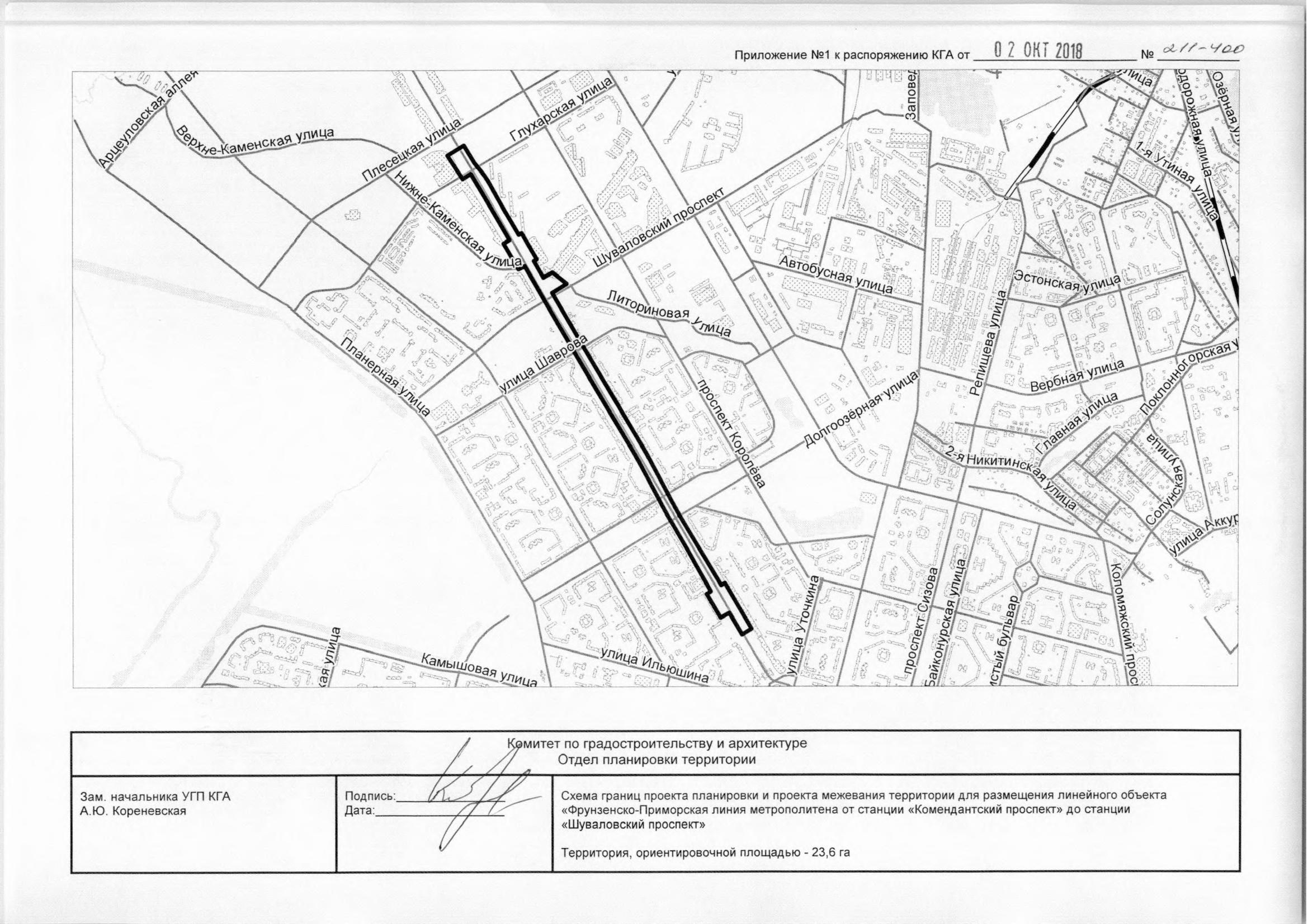 Комитет по развитию транспортной инфраструктуры (КРТИ) Санкт-Петербурга 14 сентября 2018 года заключил контракт с АО «Метрогипротранс» на корректировку проектной документации по строительству продолжения Фрунзенско-Приморской ветки метро от станции «Комендантский проспект» до станции «Шуваловский проспект». Сумма государственного контракта составляет 132,7 млн рублей.