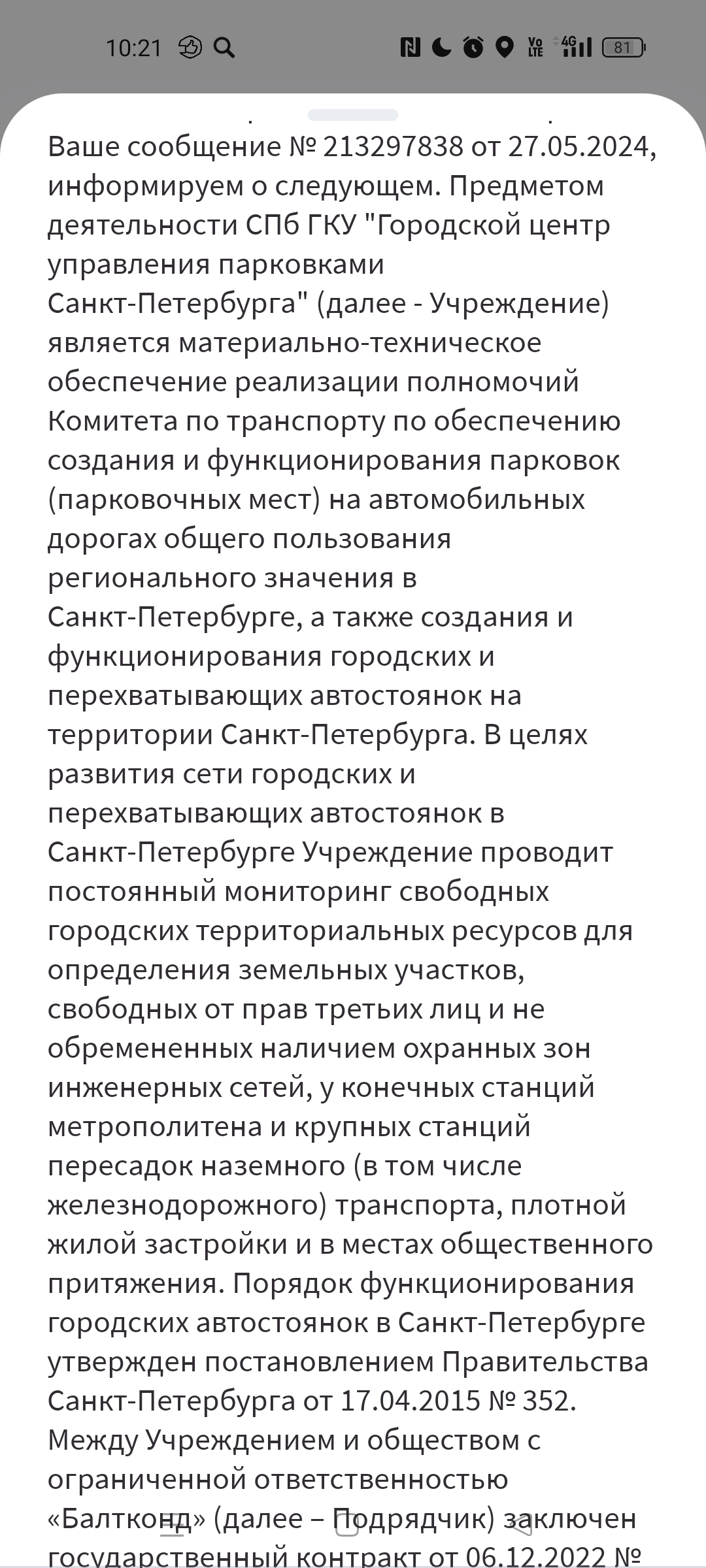 Ответ комитета по транспорту по поводу того что до открытия метро Шушары там анонсировалос 630 машиномест на парковке.