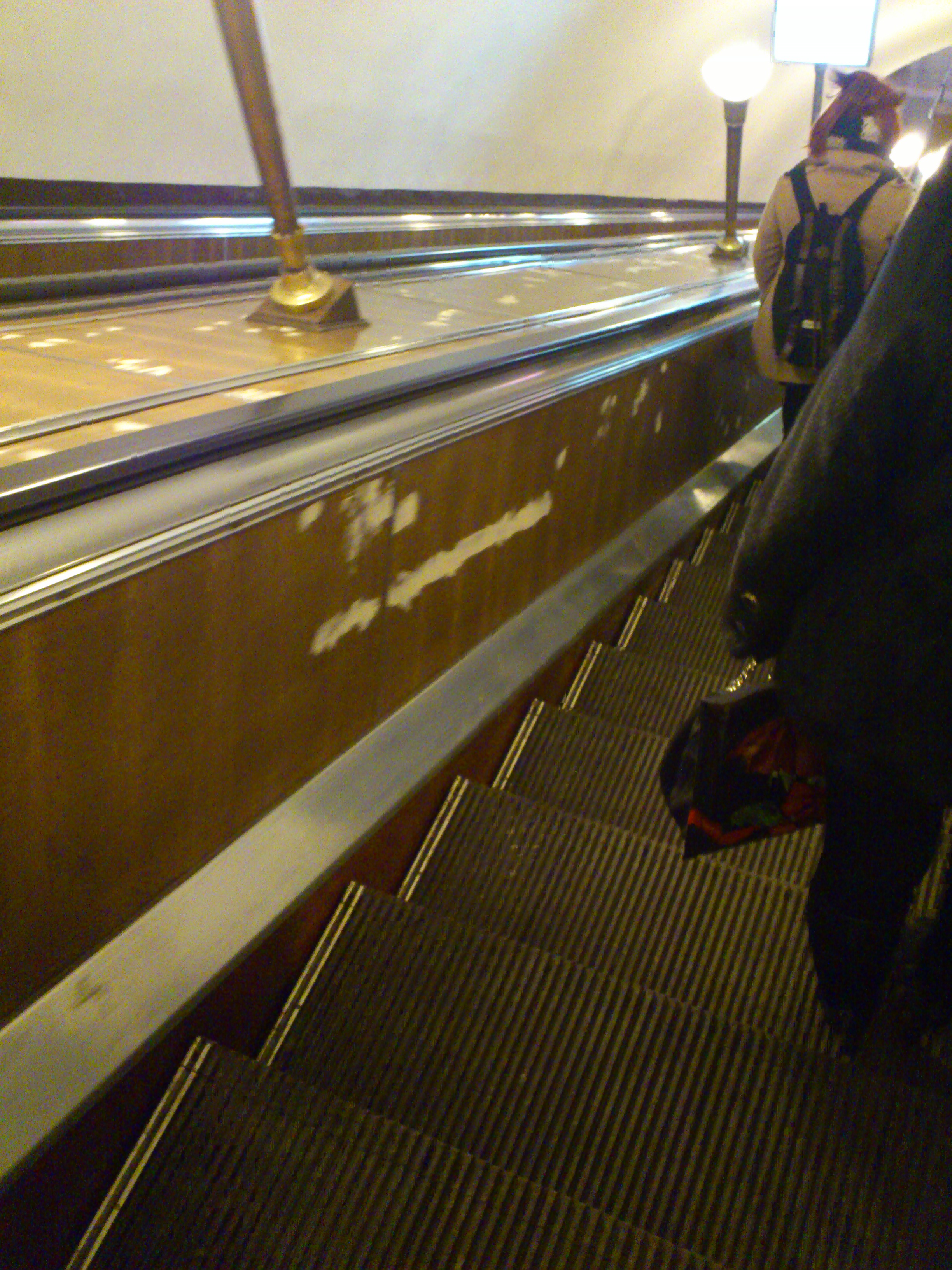 Еще остались не покрашенными элементы балюстрады вдоль третьего эскалатора.