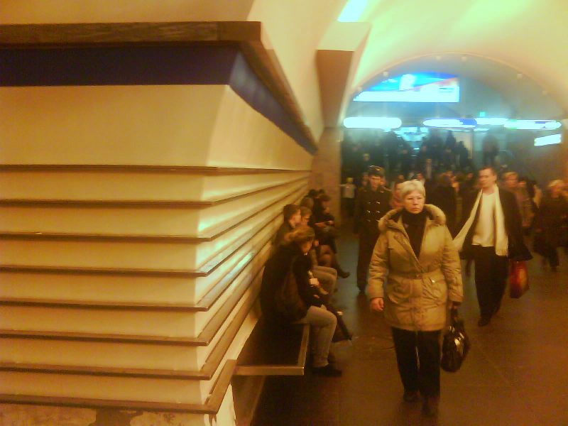 Гостиный двор 1-ый путь , на внутренней стороне горлифта , между 4-ой и 5-ой станционными дверями ( т.е. между первым и вторым вагонами ) прилепили НИПовскую табличку с названием станции . Нафига она там ?! Всё равно её из салона вагона не видно ! :fool: