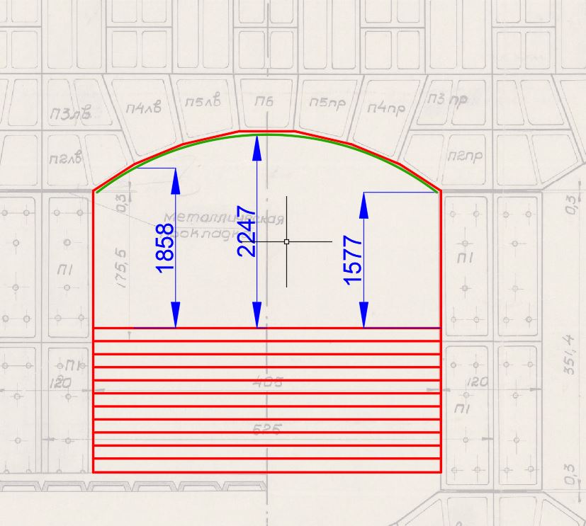 Красным обвёл край обделки, зеленым - отделки (её толщина под аркой 40 мм).