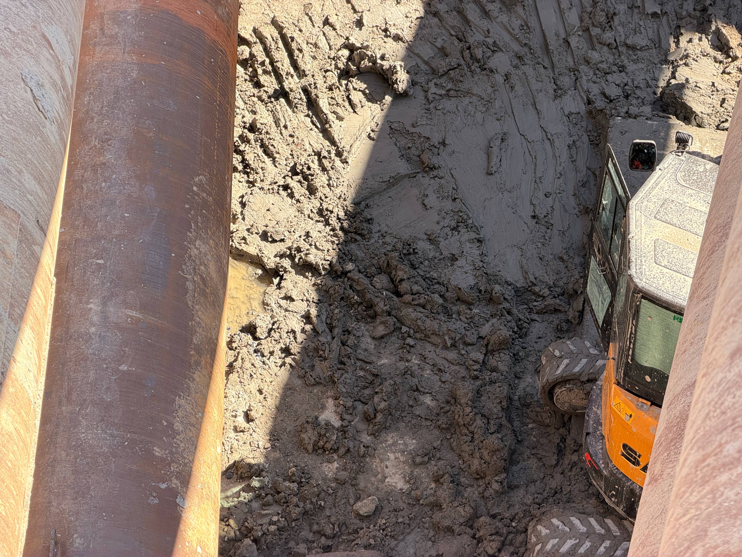 Видите это серое пятно, чуть светлее остального серого - это двухпутный тоннель.