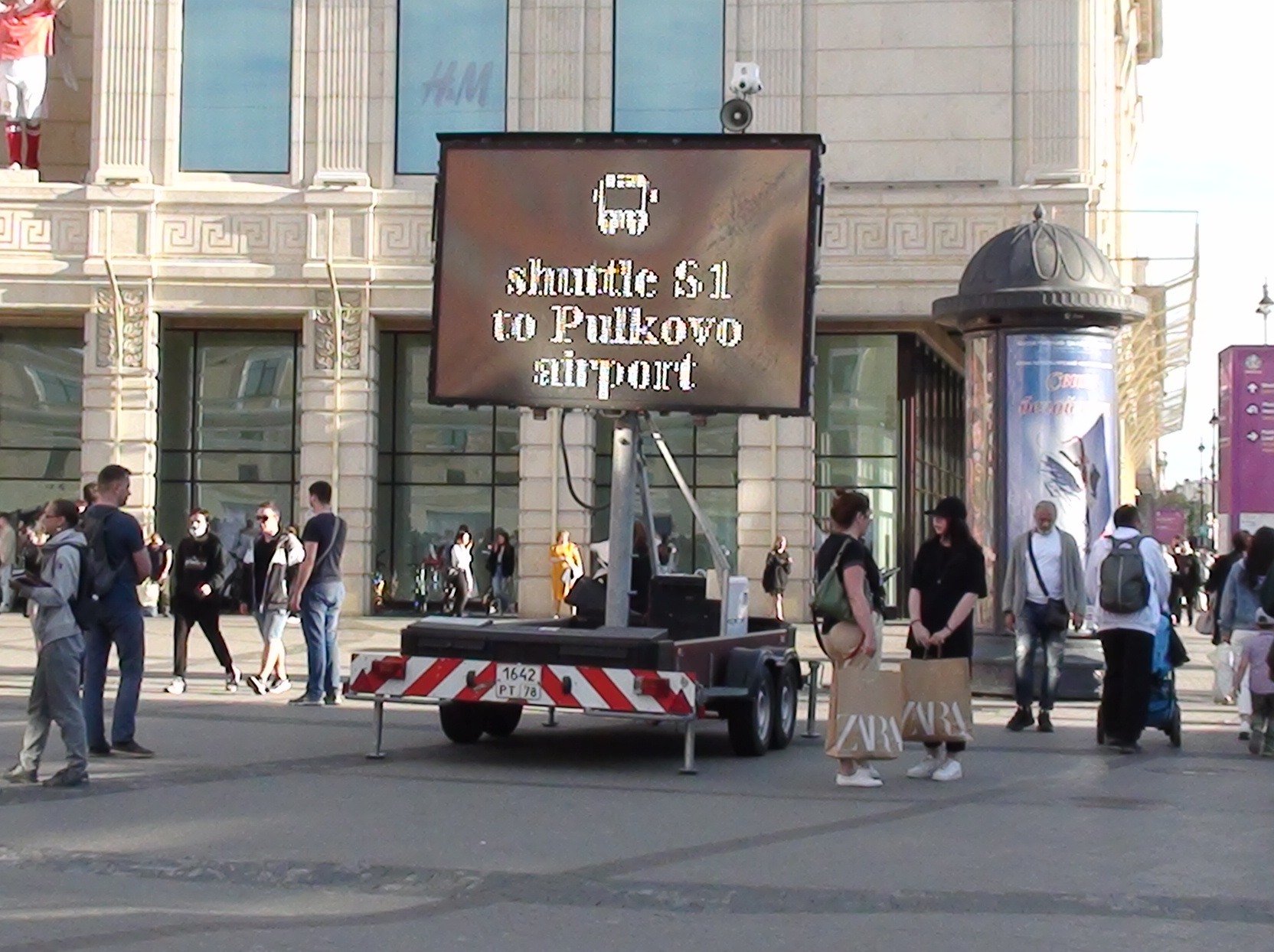 Ещё угарно оформлена их остановка. На прицепе размещён электронный указатель...По-моему так было и в прошлые КК и ЧМ. Смотрится дико. Учитывая то, сколько вбито туда денег, могли бы мини-остановки сделать.
