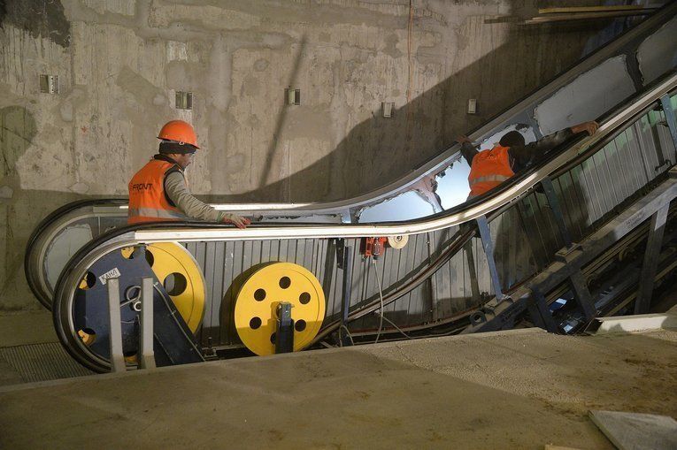 На обеих строящихся станциях продолжается монтаж инженерных сетей, ведется пусконаладка эскалаторов и траволаторов, отделочные работы.
