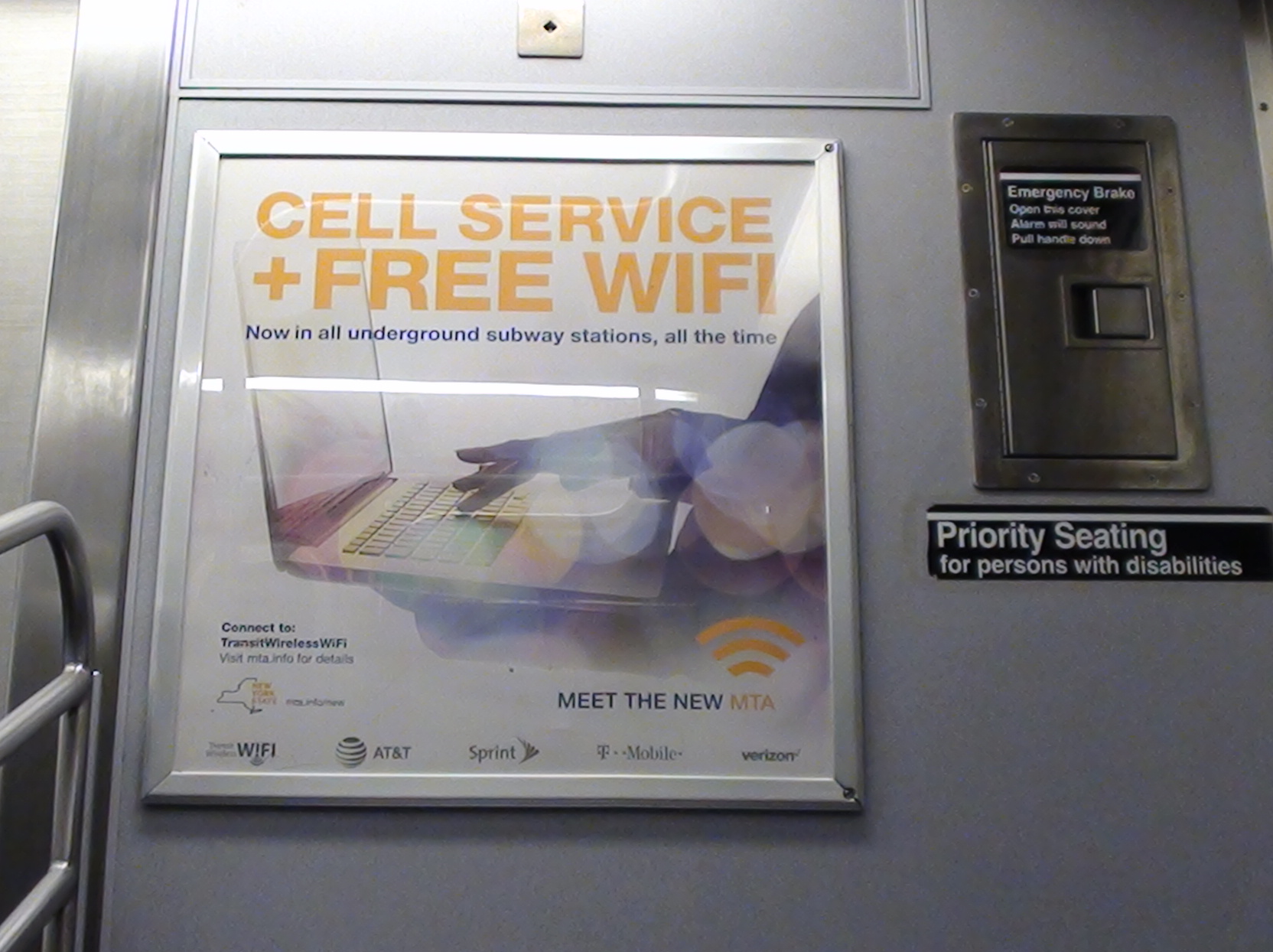 В вагонах НЙ метро есть wi-fi, установлен в межоконном пространстве служебных дверей. Внедрили вайфай совсем недавно.