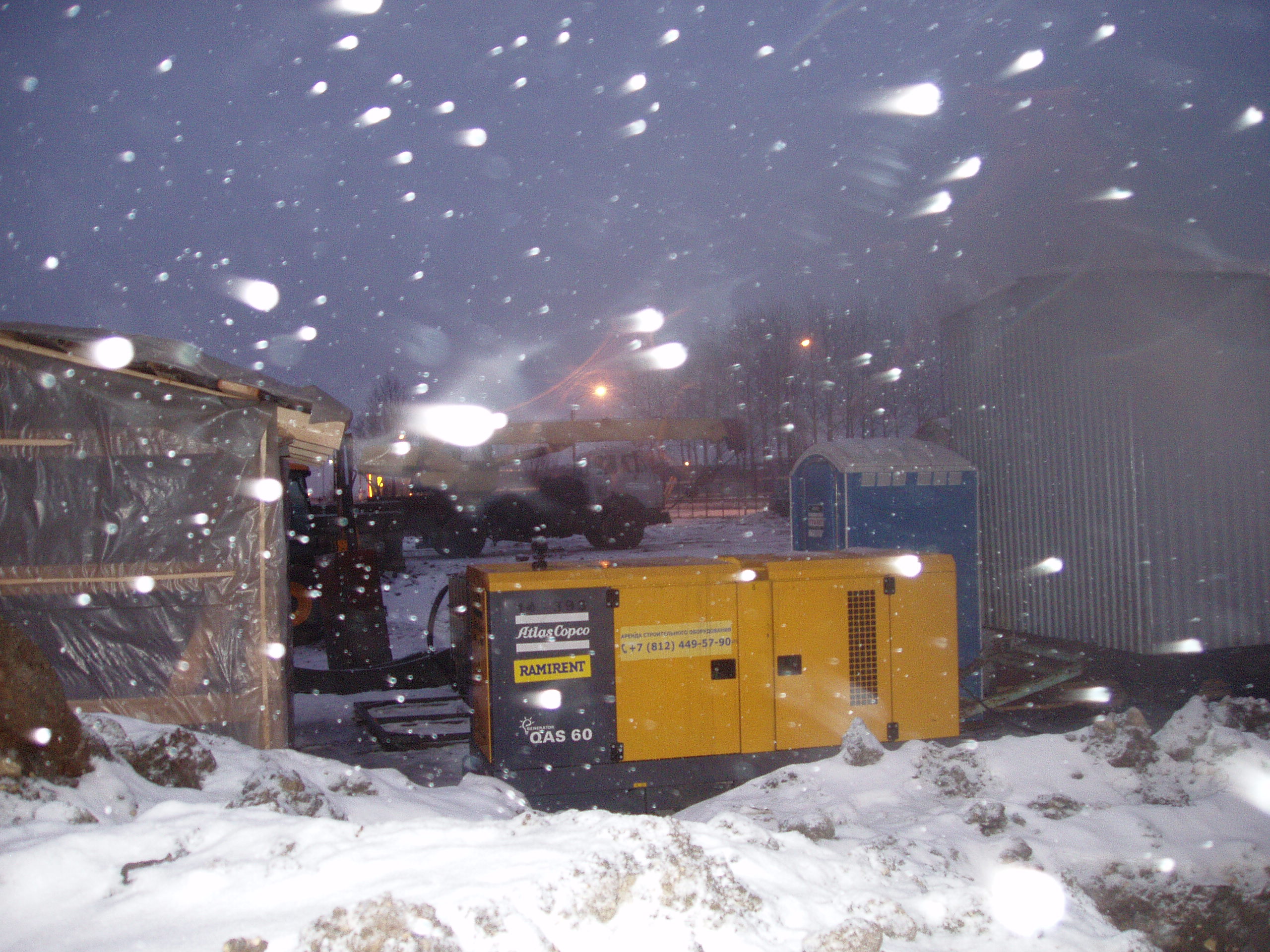 На площадке в 16.30 было тихо. Никого нет. Ограждение пока полностью не установлено. Находится 2 ед. техники, один дизель и 2 бытовки. Бетонных плит привезли много, но пока не укладывали.