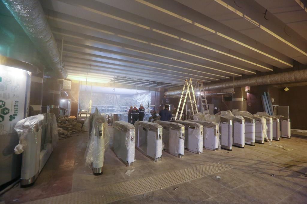 Станции и снаружи, и внутри приобретают все более законченный вид. Завершена облицовка вестибюлей и подземных залов, здесь уже работает архитектурное освещение. Завезены турникеты, идет их установка, подключение и пусконаладка. На следующей неделе в кассовых помещениях начнется монтаж оборудования.