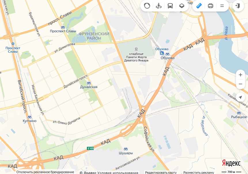 Проспект Славы, Дунайский проспект и Южная уже на Яндекс.Картах изображены =).