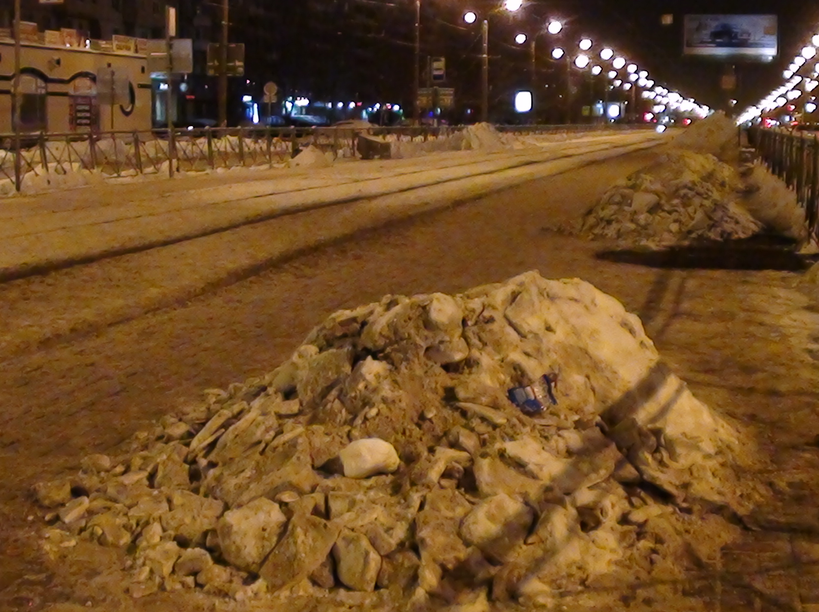 На Просвете ещё круче...Весь снег свалили в кучу и не увозят. Народ, бегущий на трамвай приходится уже 3-й день эти кучи огибать...
