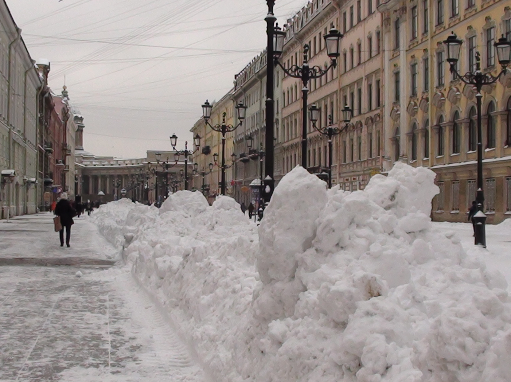 "Очень хорошо" убрали на Малой Конюшенной. Просто снег отодвинули в сторону, где образовались почти 2-х метровые сугробы. Типа, ходите где расчистили, и плевать, что снег отодвинули на пешеходную зону, которая теперь заблокирована :crazy:
