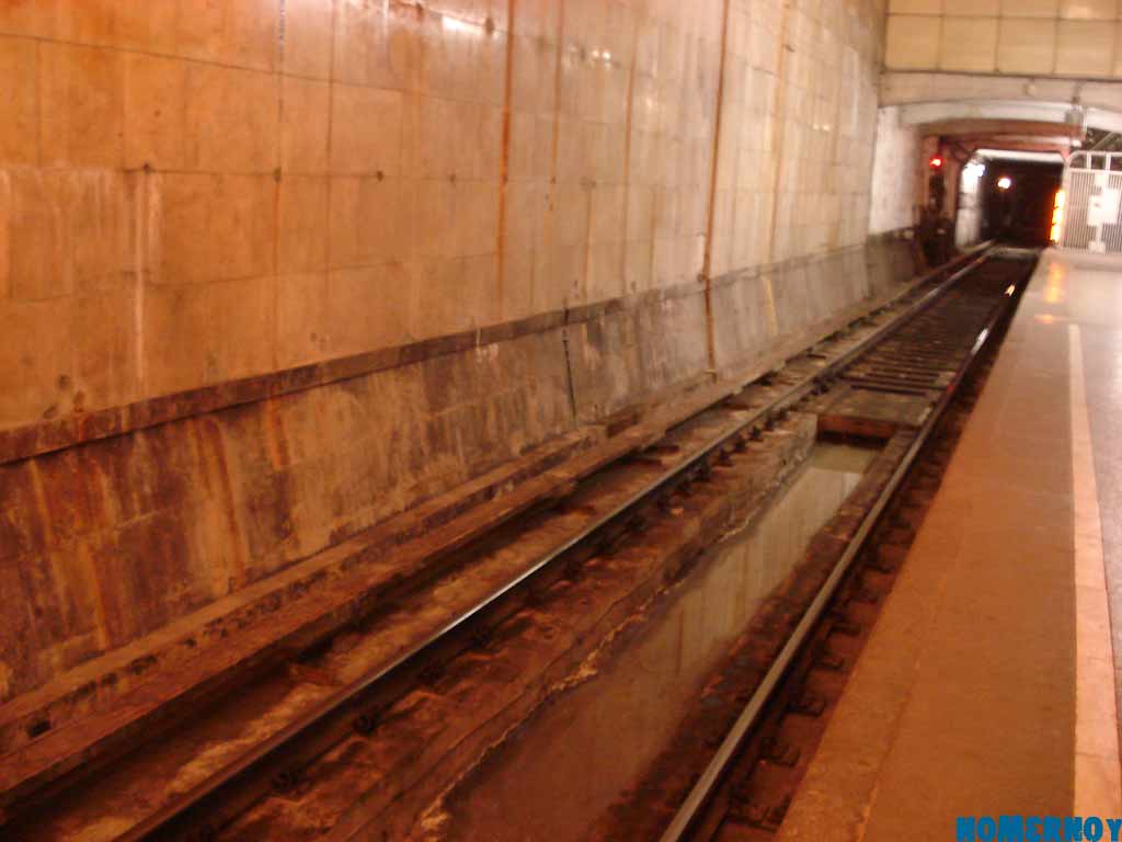 В-третьих, основная причина нынешнего удручающего состояния станции - именно путепровод! Вода заметно стала сочиться именно с начала строительства путепровода. А сейчас ещё больше! Не исключаю повреждений гидроизоляции при строительстве. Также могло сыграть свою роль вследствие строительства путепровода перераспределение нагрузок на основные конструкции станции.