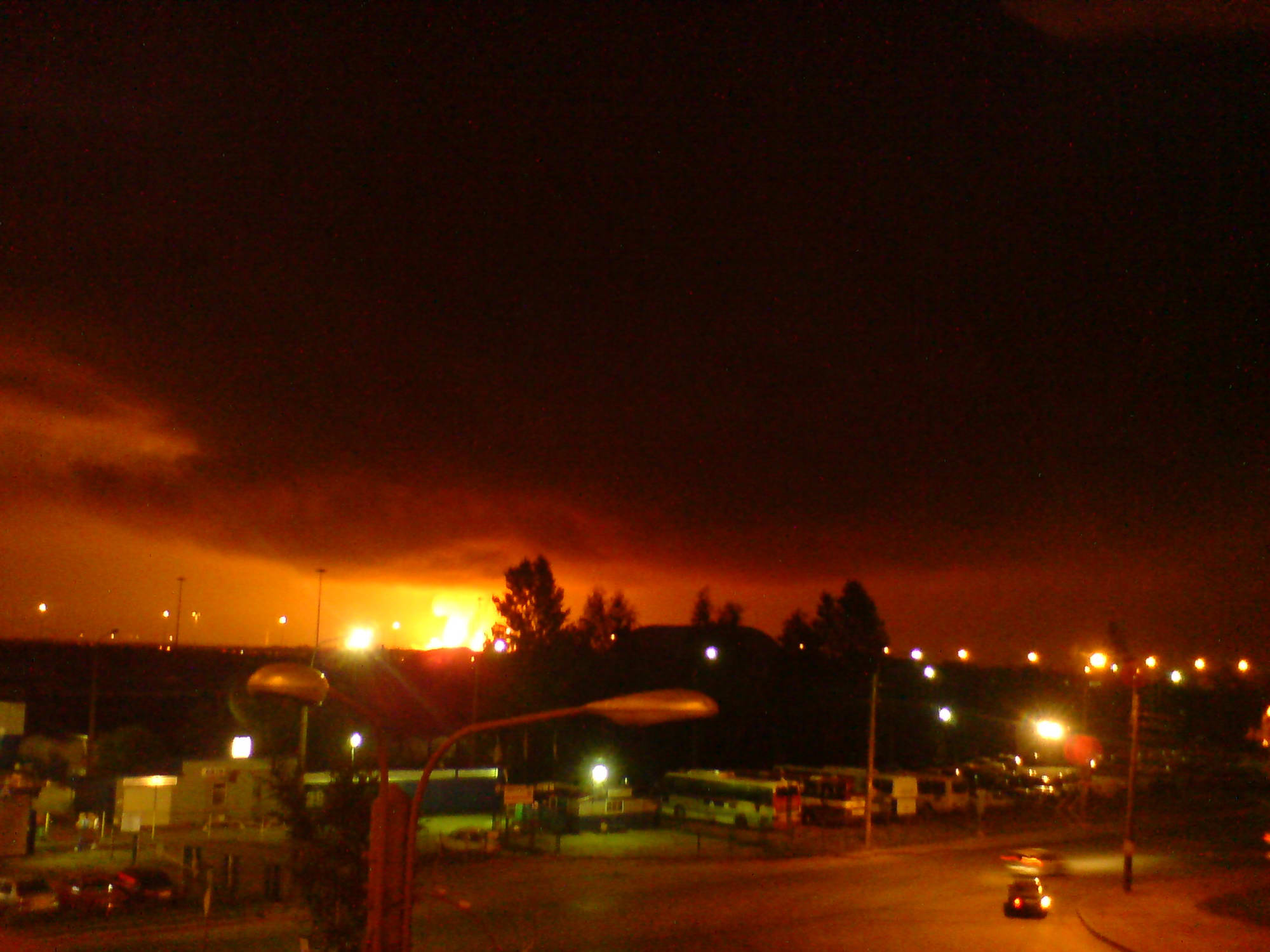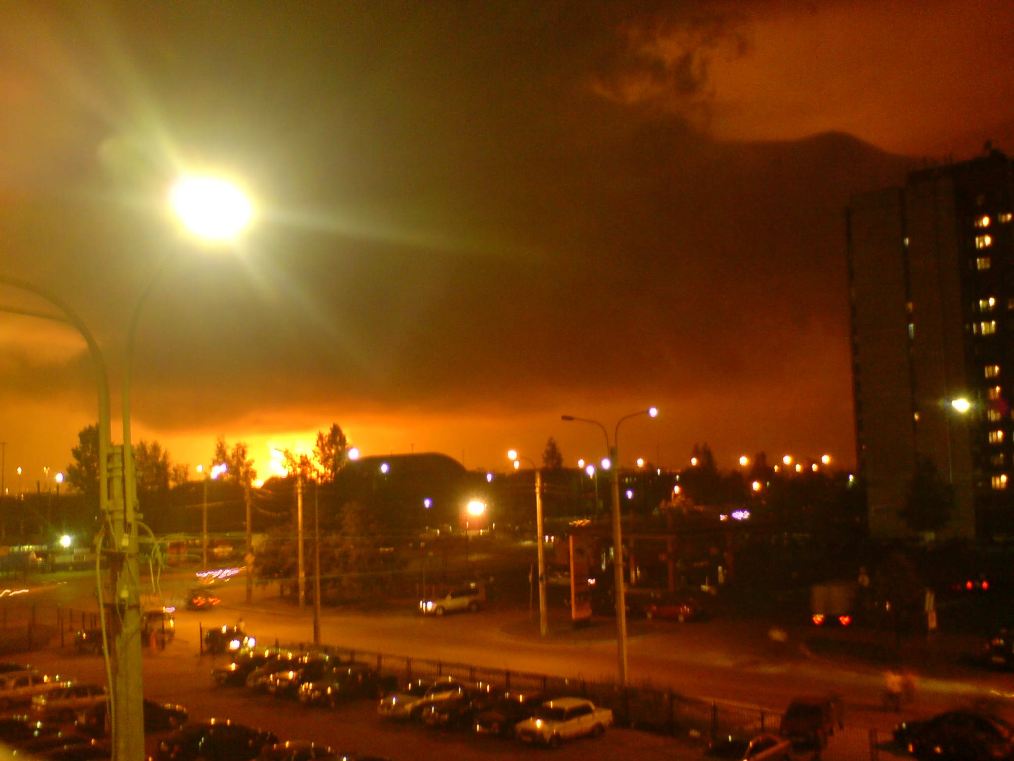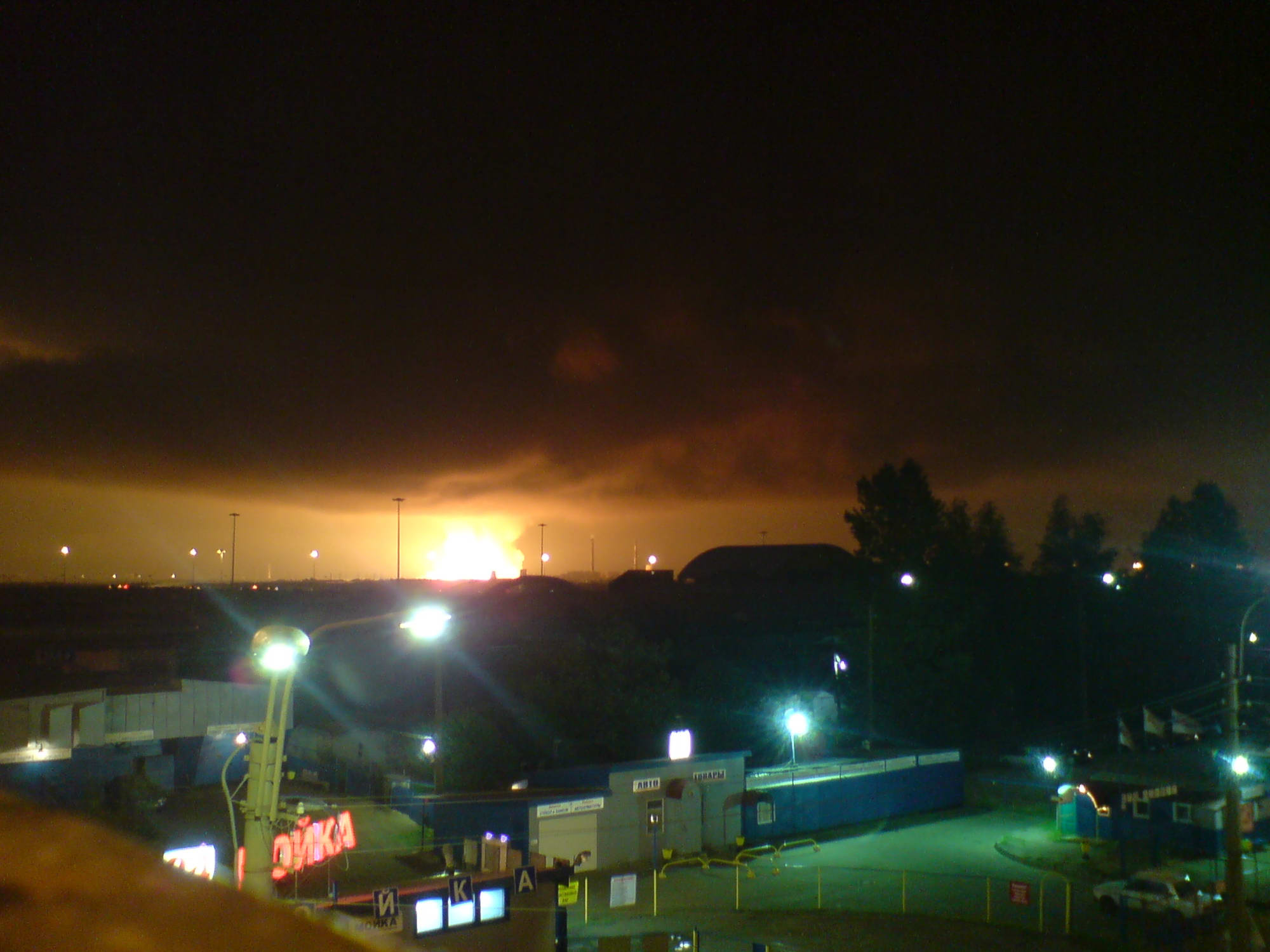 Сидел дома за компом, моргнул свет. Пошёл на кухню налить чаю, смотрю - зарево на севере. Минуты две поглядел как вдруг взрывная волна... даже люстра на кухне закачалась! Ну я и давай одеваться и бежать в бомбоу... в смысле, на улицу - поглядеть шо це таки ))