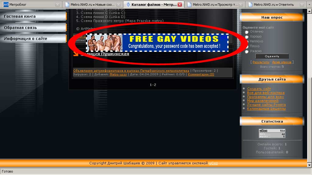 Metrofan Hunter писал(а):За ту страницу (которая на скрине) ПРОШУ ПРОЩЕНИЯ! (поймал какой то вирус что теперь эти тупые банеры вылезают и незнаю как избавиться