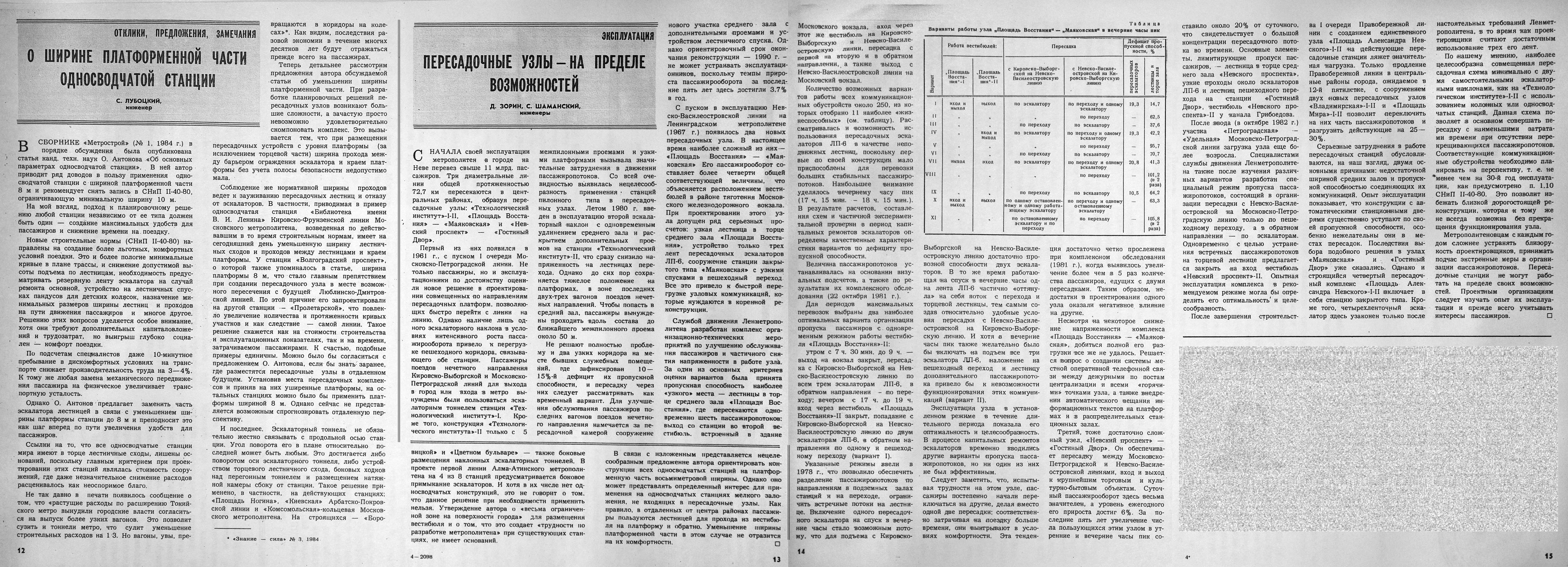 Статью на соседней странице (о ширине платформ односвода) решил оставить — хоть речь в ней идёт о Москве, но проблема общая.