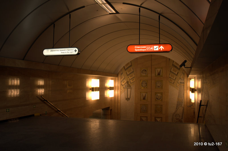 особенно не понятно при входе на Спасскую, где указатель утверждает что это станция Садовая и линия М5